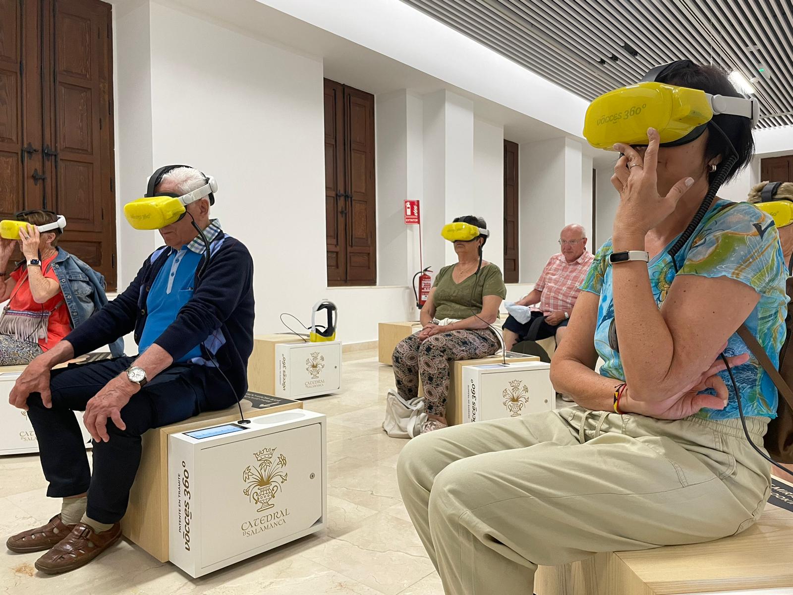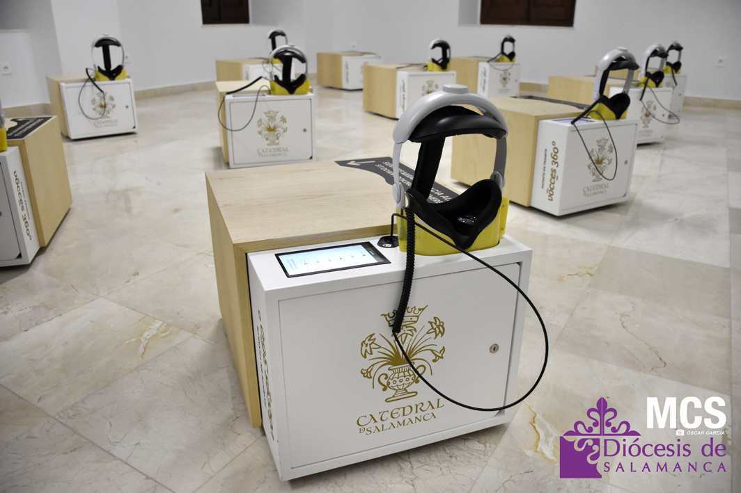 La sala, ubicada en el Palacio Episcopal, cuenta con 26 estaciones virtuales disponibles en seis idiomas: español, francés, inglés, portugués, italiano y alemán. El visitante solo tiene que sentarse, colocarse las gafas y seleccionar el idioma. Después, sobrevolará rincones nunca antes vistos en la Catedral de Salamanca, debido a su altura, como la cúpula central, sus relieves o la parte superior de las naves. En un “viaje” de 4 minutos y 20 segundos, recorrerán tanto la catedral nueva como la vieja, entre otras salas y capillas del conjunto catedralicio, siempre a vista de pájaro.