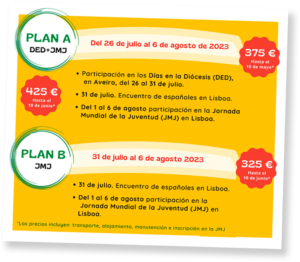 Los jóvenes de la Diócesis de Salamanca pueden inscribirse hasta el 10 de junio a través de este enlace, con un coste que varía en función de si se apuntan a una o dos experiencias. Cabe recordar que del 26 al 31 de julio se participará en los “Días en la Diócesis”, en Aveiro. Para las dos propuestas, el coste es de 425 euros, y solo la JMJ, de 325 euros.