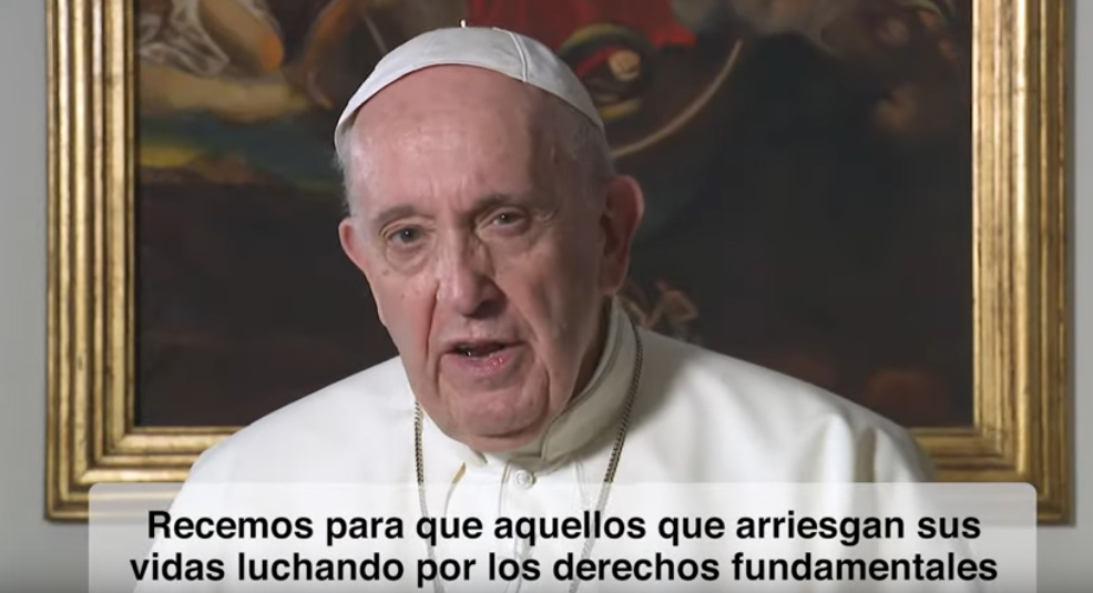 En el vídeo, Francisco subraya la importancia de “oponerse activamente a la pobreza, la desigualdad, a la falta de trabajo, de tierra, de vivienda, de derechos sociales y laborales. Y pone el énfasis también en aquellas personas que diariamente arriesgan sus vidas por defender los derechos humanos fundamentales en entornos conflictivos de todo tipo.