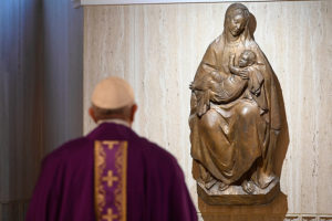 Madre de Dios y Madre nuestra, implora al Padre de misericordia que esta dura prueba termine y que volvamos a encontrar un horizonte de esperanza y de paz. Como en Caná, intercede ante tu Divino Hijo, pidiéndole que consuele a las familias de los enfermos y de las víctimas, y que abra sus corazones a la esperanza.