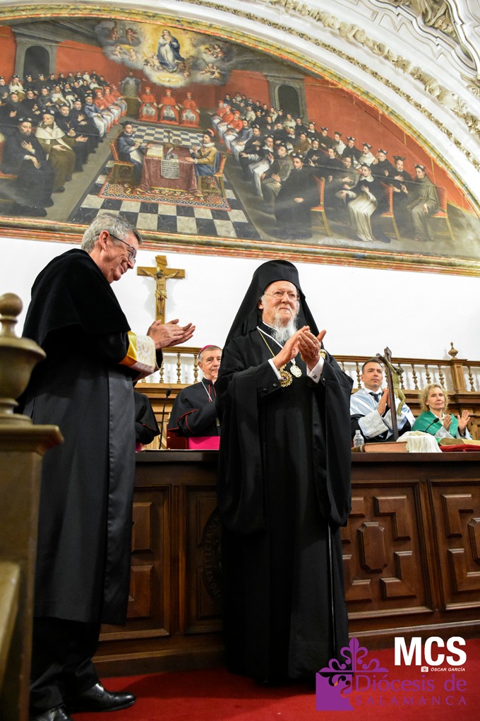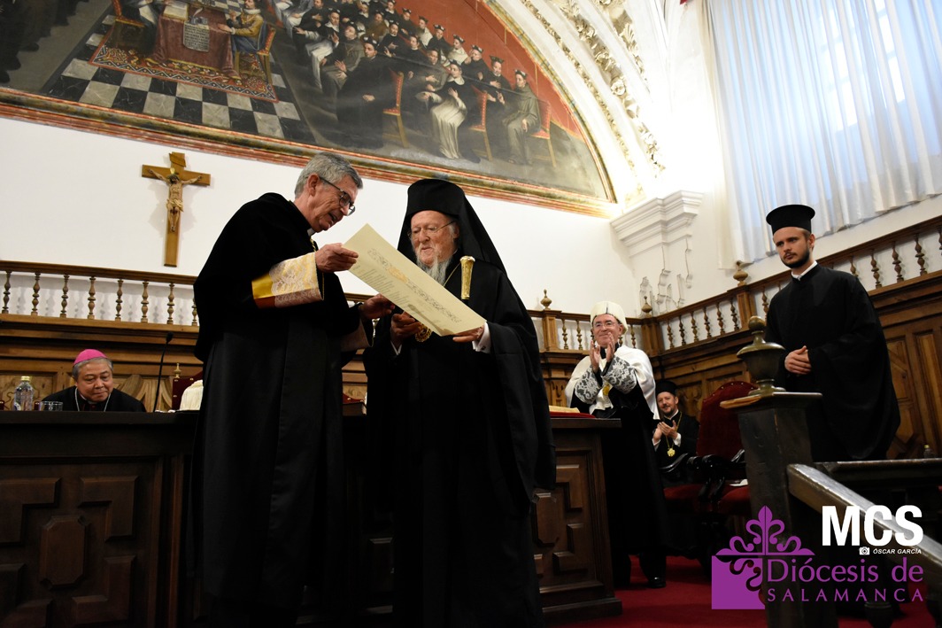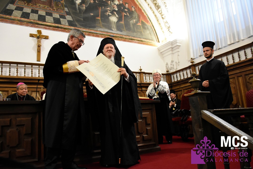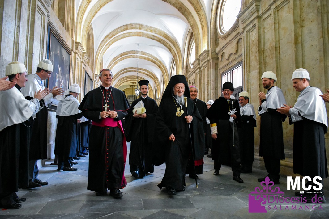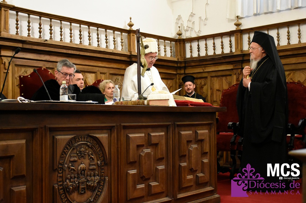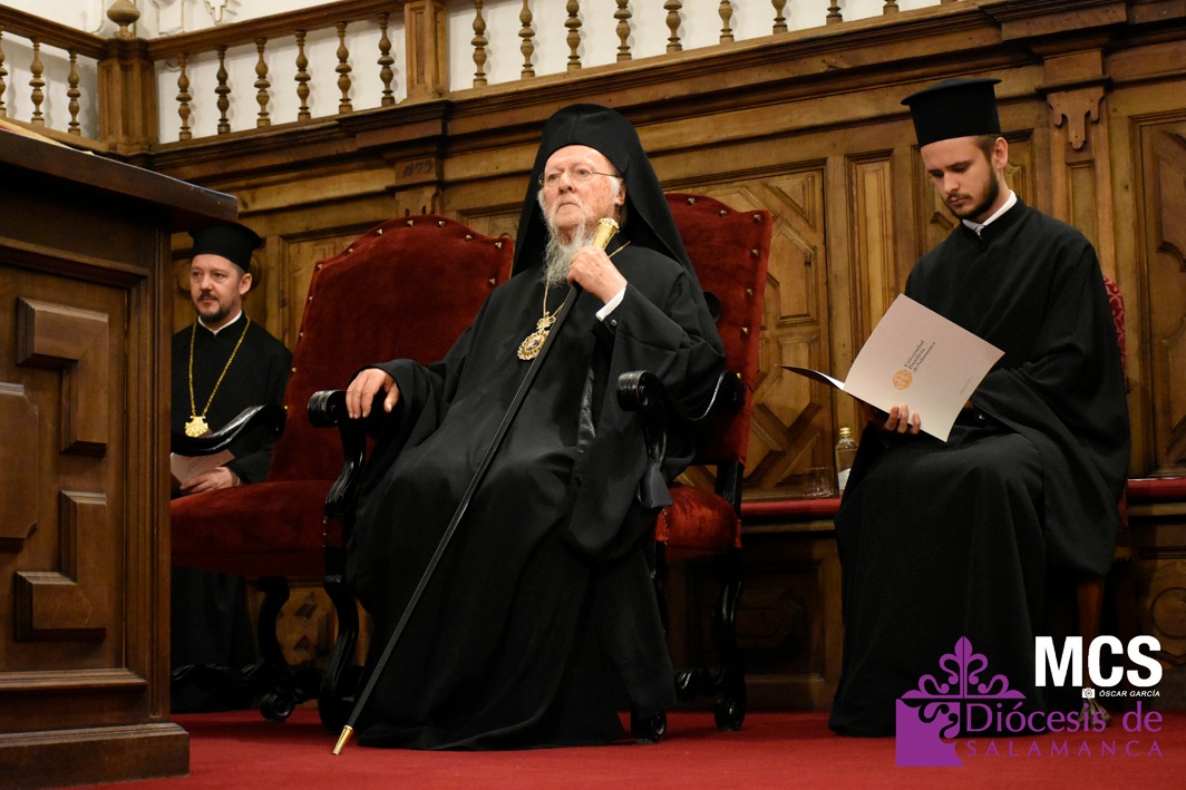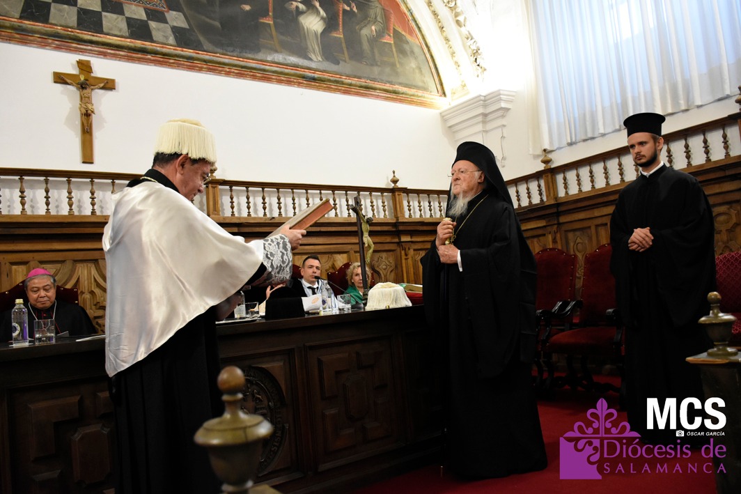 El patriarca ecuménico de la Iglesia ortodoxa y arzobispo de Constantinopla Bartolomé I ha sido investido este martes, 17 de octubre, como doctor honoris causa en Teología por la Universidad Pontificia de Salamanca. Una distinción que le ha otorgado en reconocimiento a su trayectoria y compromiso con el diálogo ecuménico, “la transmisión de valores cristianos y su gran valía personal”.