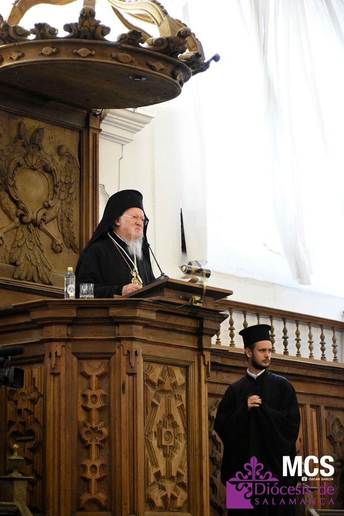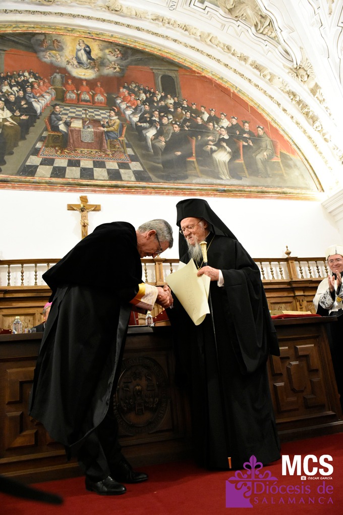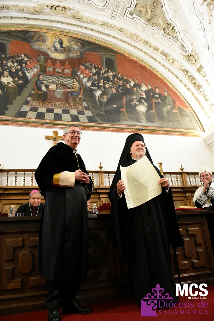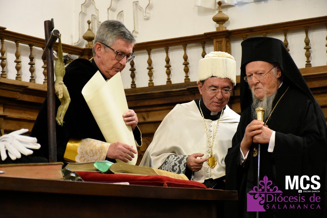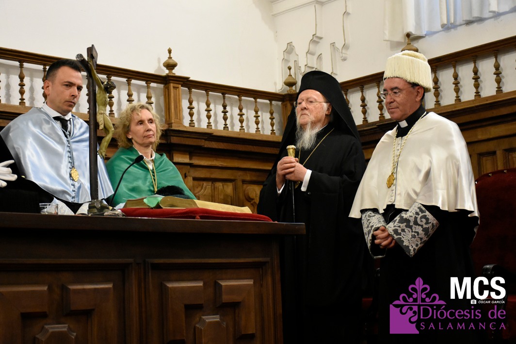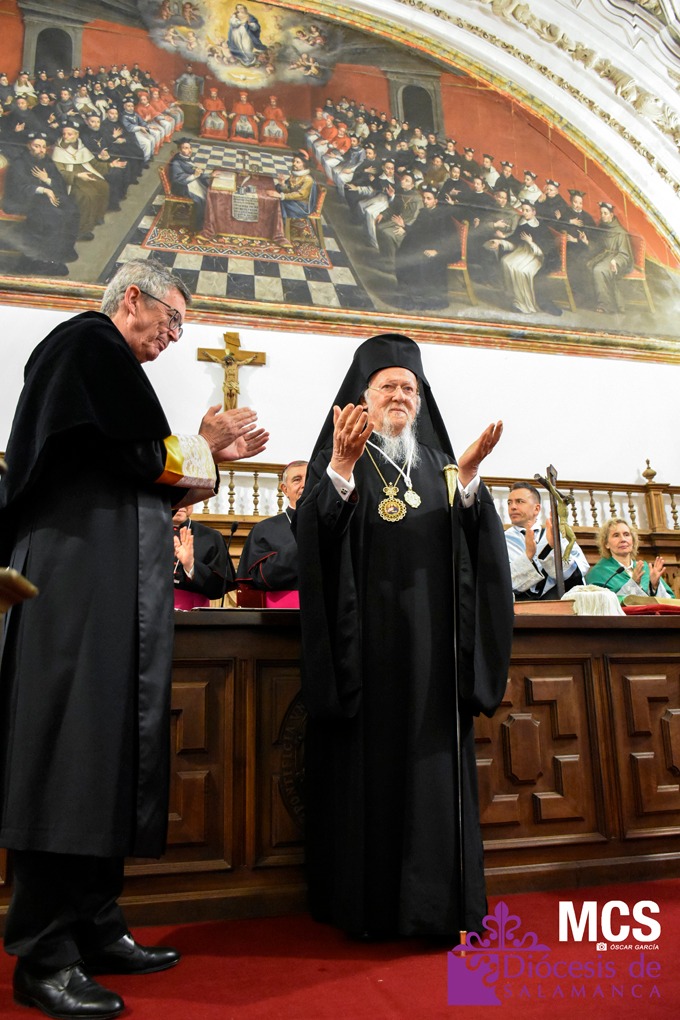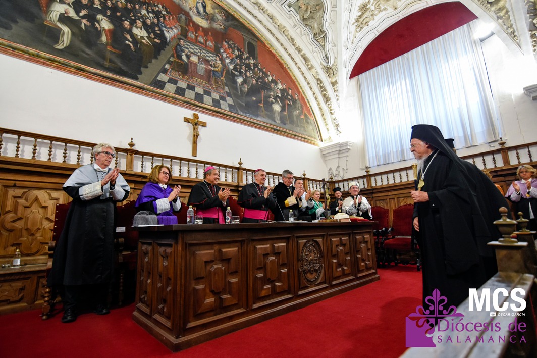 El patriarca ecuménico de la Iglesia ortodoxa y arzobispo de Constantinopla Bartolomé I ha sido investido este martes, 17 de octubre, como doctor honoris causa en Teología por la Universidad Pontificia de Salamanca. Una distinción que le ha otorgado en reconocimiento a su trayectoria y compromiso con el diálogo ecuménico, “la transmisión de valores cristianos y su gran valía personal”.