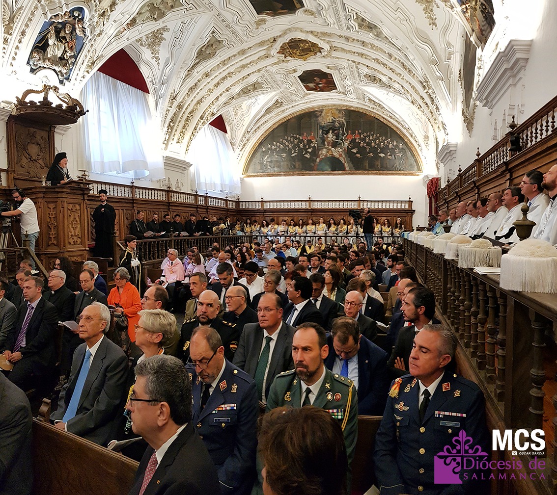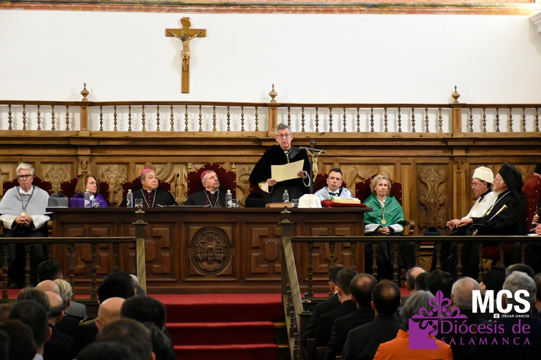 El acto, celebrado en el Aula Magna de la universidad eclesiástica, ha sido presidido por el Gran Canciller y obispo de Ciudad Rodrigo y Salamanca, Mons. José Luis Retana, y ha contado con la asistencia de numerosas autoridades eclesiásticas, como el Nuncio Apostólico en España, Mons. Bernardito Cleopas Auza; el cardenal arzobispo de Estocolmo, Mons. Lars A. Arborelius; el obispo de León, Mons. Luis Ángel de las Heras; o los metropolitas de Calcedonia, S.E. Emmanuel Geron; Lemnos, S.E. Ierotheos; Francia, S.E. Demetrios, y España y Portugal, S.E. Bessarion Komziás; así como autoridades civiles y militares, como la vicerrectora de la Universidad de Salamanca, Ana María Martín Suárez; los embajadores de Grecia en España, Ilias Fotopoulos, y de Grecia en Portugal, Ioannis Metaxas; entre otros.