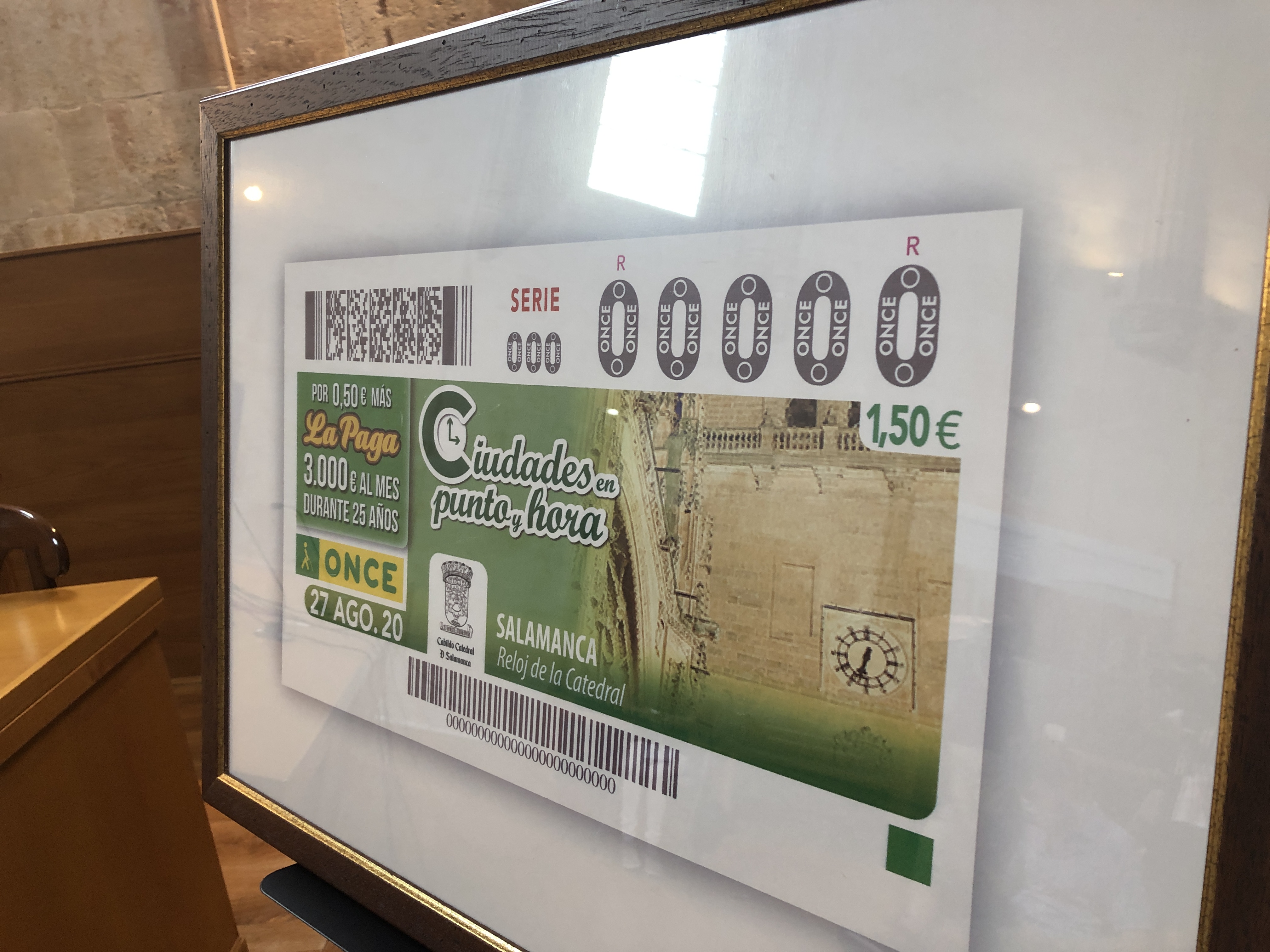 La responsable de la ONCE recordó el apoyo a los servicios sociales de su organización, y puntualizó que este cupón de la Catedral de Salamanca ya fue impreso en el mes de marzo para su venta el día 22, “pero con motivo de la pandemia se paralizaron los sorteos por primera vez en la historia de la ONCE”. Asimismo, recordó que con el motivo de este cupón, la imagen de Salamanca y de su Catedral se distribuirá a través de sus 20.000 vendedores y un total de 5,5 millones de cupones.