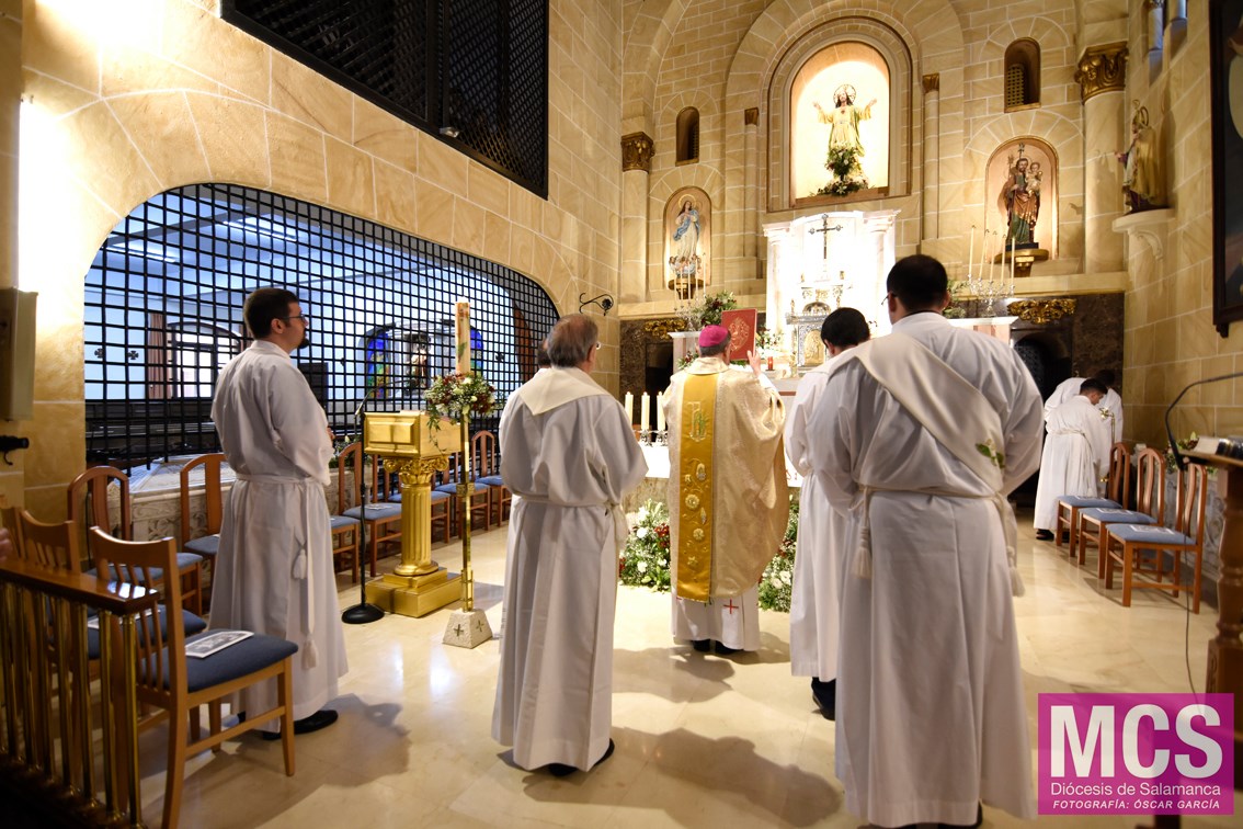 A lo largo de este año Jubilar se recordará los orígenes de la fundación, que partió de Madre María Amparo en su pueblo natal, Cantalapiedra, junto a otras dos mujeres sencillas, “en el lugar donde le encomendó el Señor”. El mismo día de su llegada a la primera ubicación del monasterio, se unió a su causa una mujer más, del mismo municipio. Aquella pequeña casa tenía espacio para diez hermanas y pronto se quedó pequeña, ya con 16 integrantes en la comunidad se plantearon la construcción del actual monasterio del paseo de la Estación.