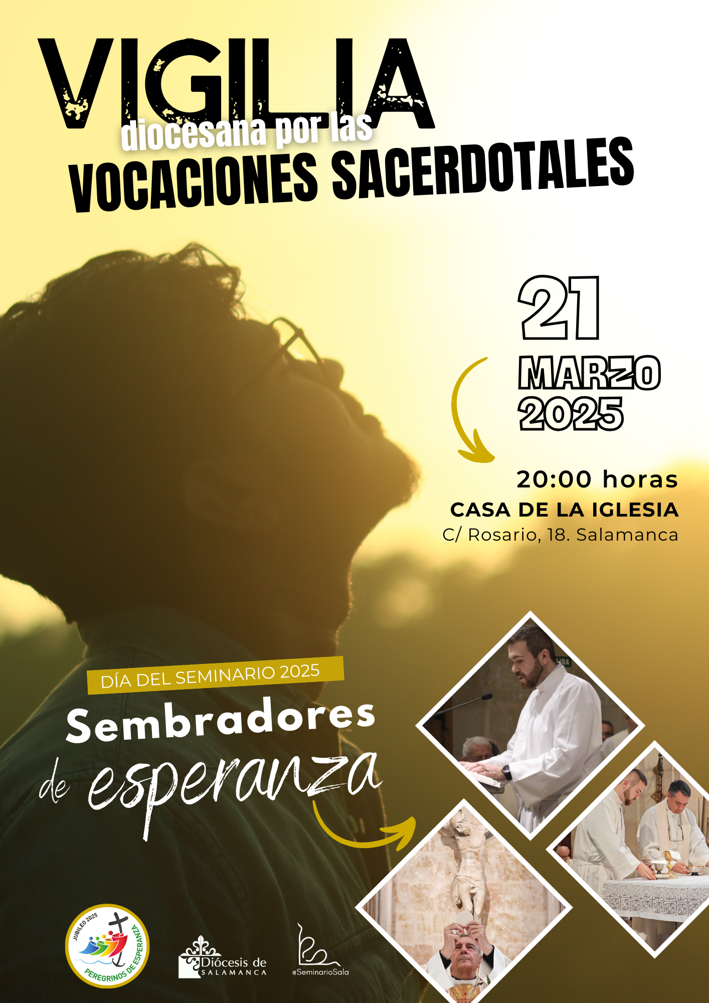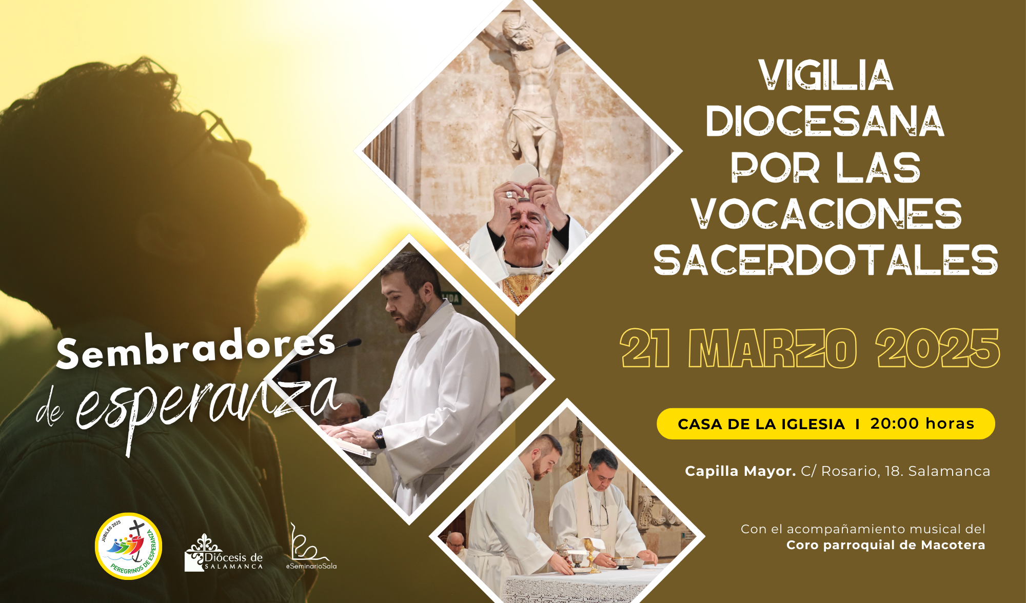 “Sembradores de esperanza”, es el lema de la vigilia diocesana de oración por las vocaciones, que organiza el Seminario diocesano de Salamanca con ocasión de la campaña del Día del Seminario 2025. Un encuentro de oración que se celebrará el próximo viernes, 21 de marzo, a las 20:00 horas en la capilla mayor de la Casa de la Iglesia, presidido por el obispo diocesano, Mons. José Luis Retana.