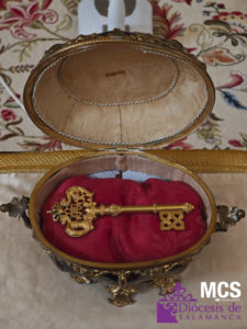 Y aunque de algunas llaves hay copia, para evitar problemas en caso de pérdida o desaparición, no se tenga que forzar el sepulcro para poder abrirlo. La combinación de las mismas corresponde a tres llaves para la reja exterior de hierro del camarín; otras tres, para la tapa de bronce incrustada en el arca de mármol por la parte anterior, y cuatro, para el arca interior de plata.