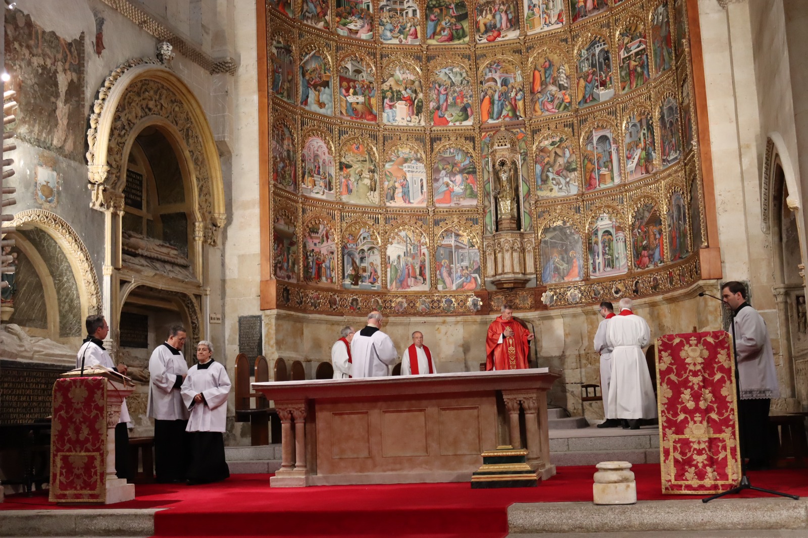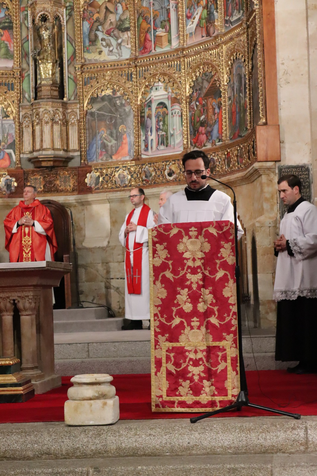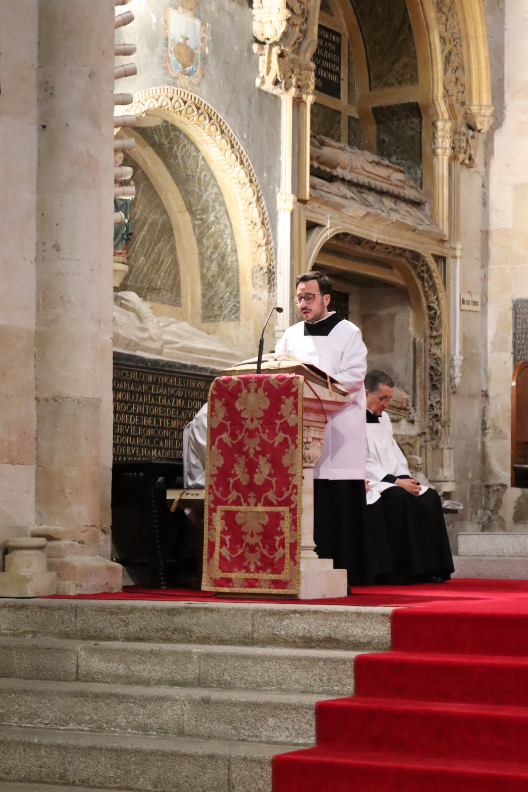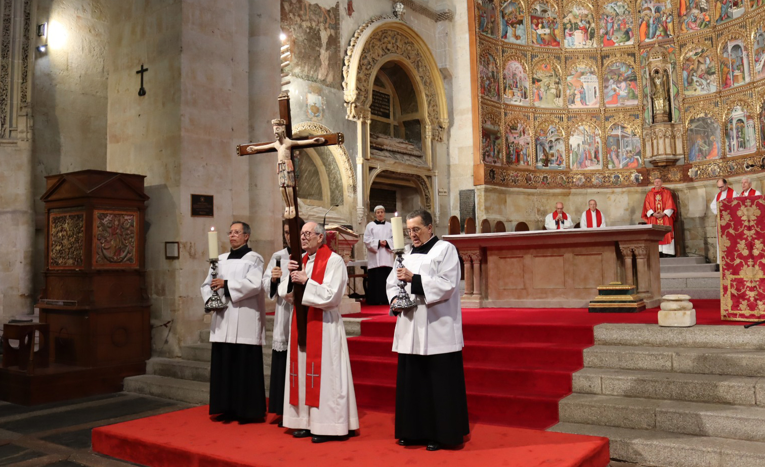 La Catedral Vieja acogió en la tarde del Viernes Santo la celebración de los Santos Oficios, presidida por el obispo diocesano, Mons. José Luis Retana, en una liturgia marcada por la sobriedad y el recogimiento, en la que la Iglesia contempla el misterio de la Cruz, ora por toda la humanidad y expresa su comunión con Tierra Santa a través de la colecta pontificia por los Santos Lugares.