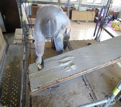 María Luisa afirma que la manipulación de la obra ha sido compleja y ha requerido muchos medios técnicos y humanos. Antes de cortar el mural, se realizó un estudio con un barrido fotográfico, “con fuentes de luz especial, haciendo pruebas de solubilidad, pruebas de estabilidad de la pintura”, para aplicar después una protección de la superficie antes del engasado.