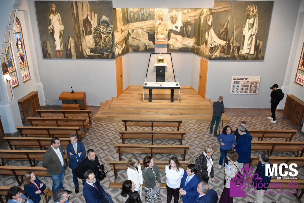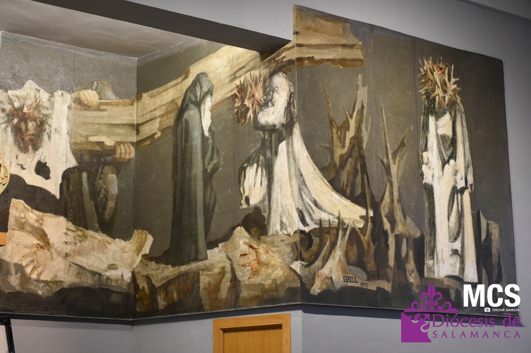 “Via Crucis”, una de las obras maestras del pintor salmantino Genaro de No Soler (1923-1992), brilla con luz propia en su nueva ubicación, la capilla del Hospital de Los Montalvos. Curiosamente, este espacio fue diseñado por su padre, el arquitecto Genaro de No Hernández, y ha sido el destino elegido por la Junta de Castilla y León y la Gerencia de Salud de Área de Salamanca para albergar la obra tras su traslado desde el Hospital Clínico Universitario.