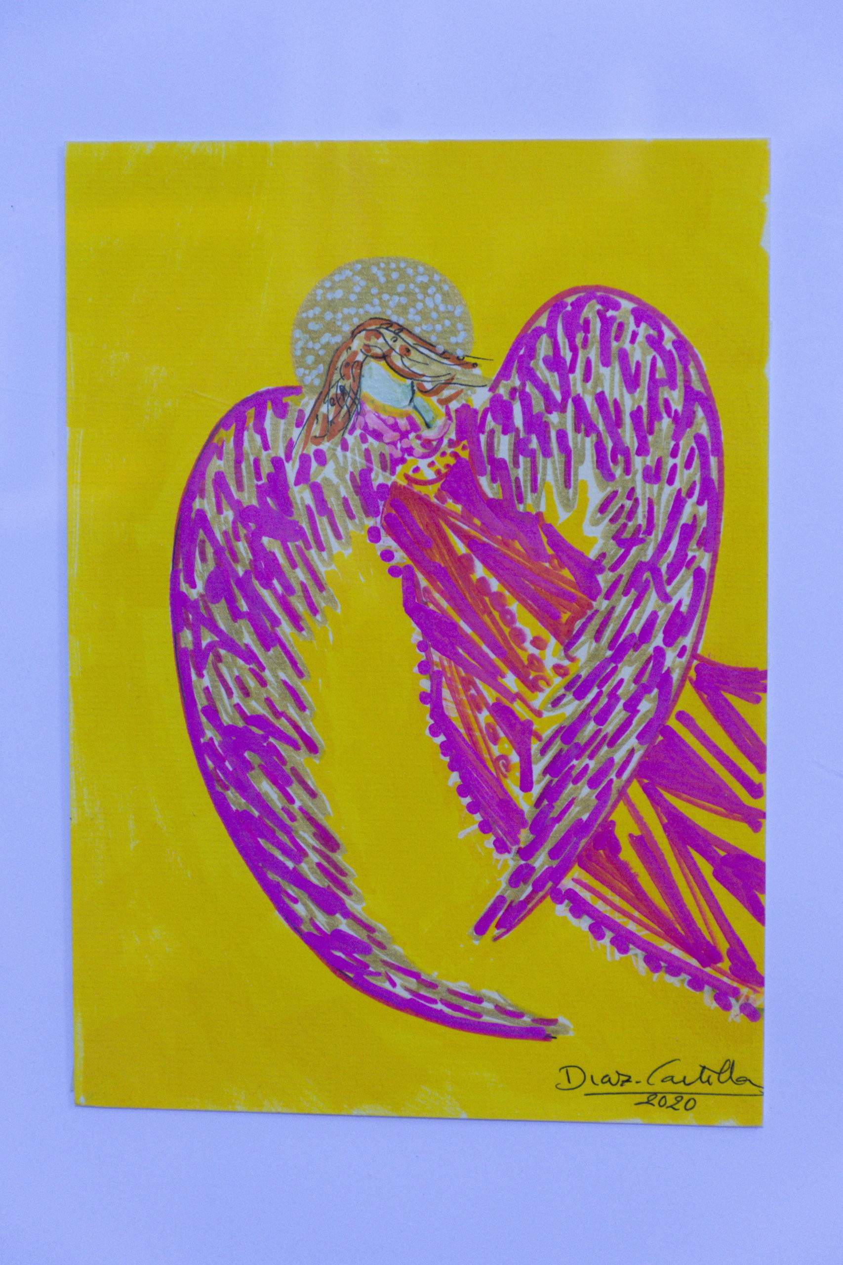 Resulta muy significativo que los ángeles, que aparecen en los momentos más destacados de la vida de Jesús, aparezcan en la madurez y plenitud de la vida de Luciano Díaz-Castilla, con total naturalidad como si fueran seres reales que en su vuelo velan por el destino de todos nosotros para hacernos partícipes de la gloria de Dios mientras se alegran llenando de sensibilidad su paso de aire, como un velo entre corpúsculos. Desde la magna exposición de 2015 dedicada a la figura de Santa Teresa en el “Lienzo Norte” de Ávila, Luciano Díaz-Castilla parece haber abandonado el óleo y las fuertes texturas sobre el lienzo en pos de colores puros y planos que solo la viveza del acrílico puede ofrecer.