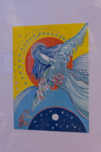 El blanco de plomo que usaba Fran Angélico para dar luminosidad a sus ángeles se transforma aquí en colores acrílicos vibrantes, planos, puros, potentes, típicos de la pintura japonesa, que delimitan el espacio acrecentando la sensibilidad y el movimiento. El atardecer del Valle del Corneja, donde se sitúa el taller del artista, lleno de luz y color, de esa luz del norte cambiante y sublime, da vida a los cielos azules de los que surge esta colección de ángeles llena de elucubraciones de color. El sol, la luna, las estrellas, todos los astros se confabulan para acoger este vuelo del espíritu de suaves líneas y colores sin forma.
