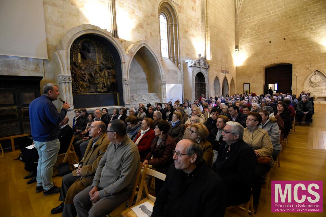 En el encuentro los sacerdotes Tomás Gil y Juan Andrés Martín, responsables del grupo Fe y Arte, presentaron el programa de actividades que se van a llevar a cabo a lo largo de este curso, con el objetivo de mostrar el mensaje de Cristo a través del arte poniendo en valor el patrimonio artístico de la Diócesis de Salamanca a través de su estudio y contemplación. Las próximas citas tendrán lugar en la iglesia de La Purísima (8 de diciembre), la Capilla de la Vera Cruz (24 febrero), el Colegio de los Agustinos Recoletos (28 abril) y la Iglesia de San Juan de Sahagún (9 junio).
