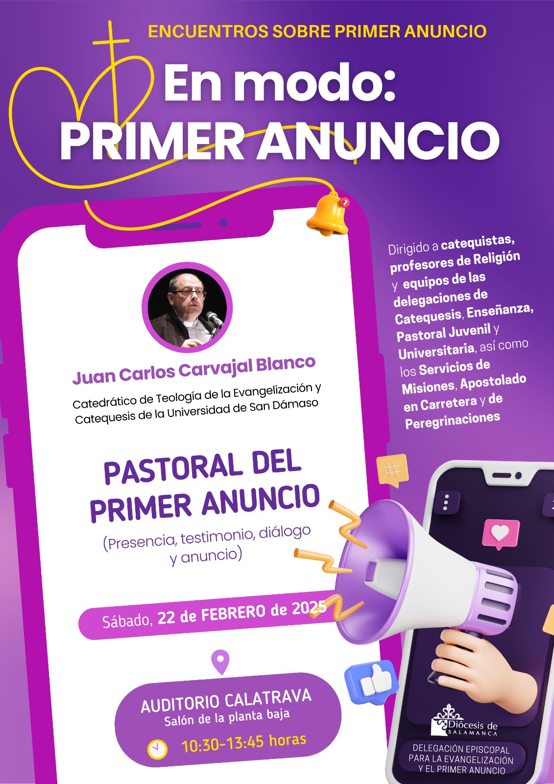 Esta iniciativa responde a una de las prioridades de la Diócesis de Salamanca de este curso: “Despertar al misterio de la fe”, promoviendo una Iglesia en salida a través de espacios de formación que impulsen una evangelización cercana y renovada que acompañe a las personas en su encuentro con Cristo. Con esta idea, la Delegación Episcopal para la Evangelización organizó tres encuentros formativos para este curso. El último se celebrará el 26 de abril, y en él se presentarán testimonios y experiencias concretas sobre el primer anuncio.