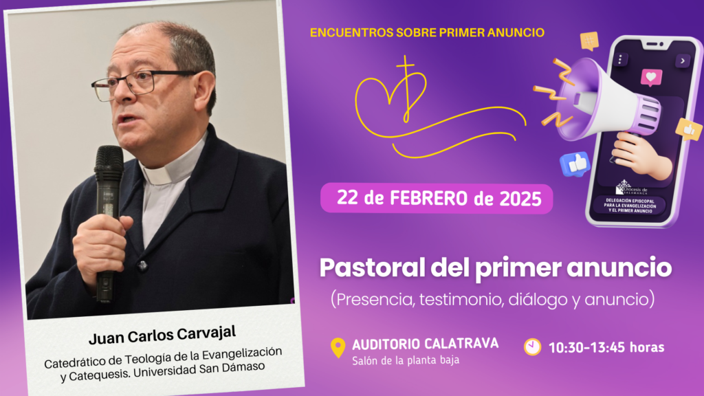 Dirigido por Juan Carlos Carvajal, tendrá lugar el sábado, 22 de febrero, de 10:30 a 13:45 horas en la sala de la planta baja del auditorio Calatrava y forma parte … Sigue leyendo Encuentro formativo sobre la pastoral del primer anuncio
