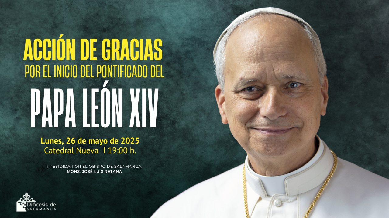 La Diócesis de Salamanca dará gracias por el inicio del pontificado del papa León XIV con una eucaristía que se celebrará el próximo lunes, 26 de mayo, a las 19:00 horas, en la Catedral Nueva, presidida por el obispo, Mons. José Luis Retana.
