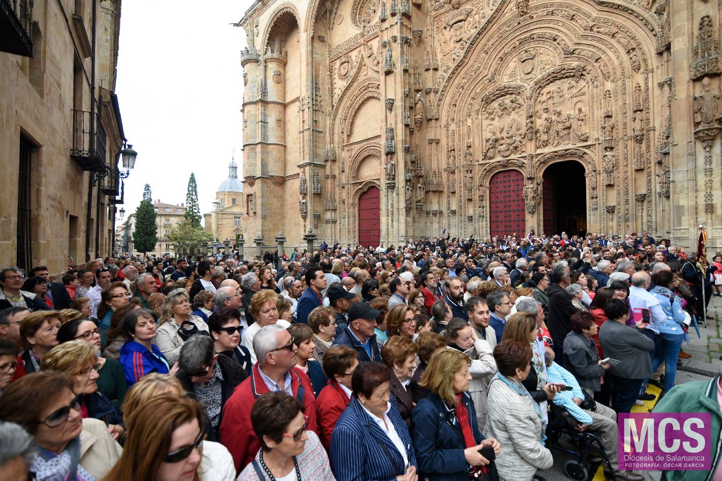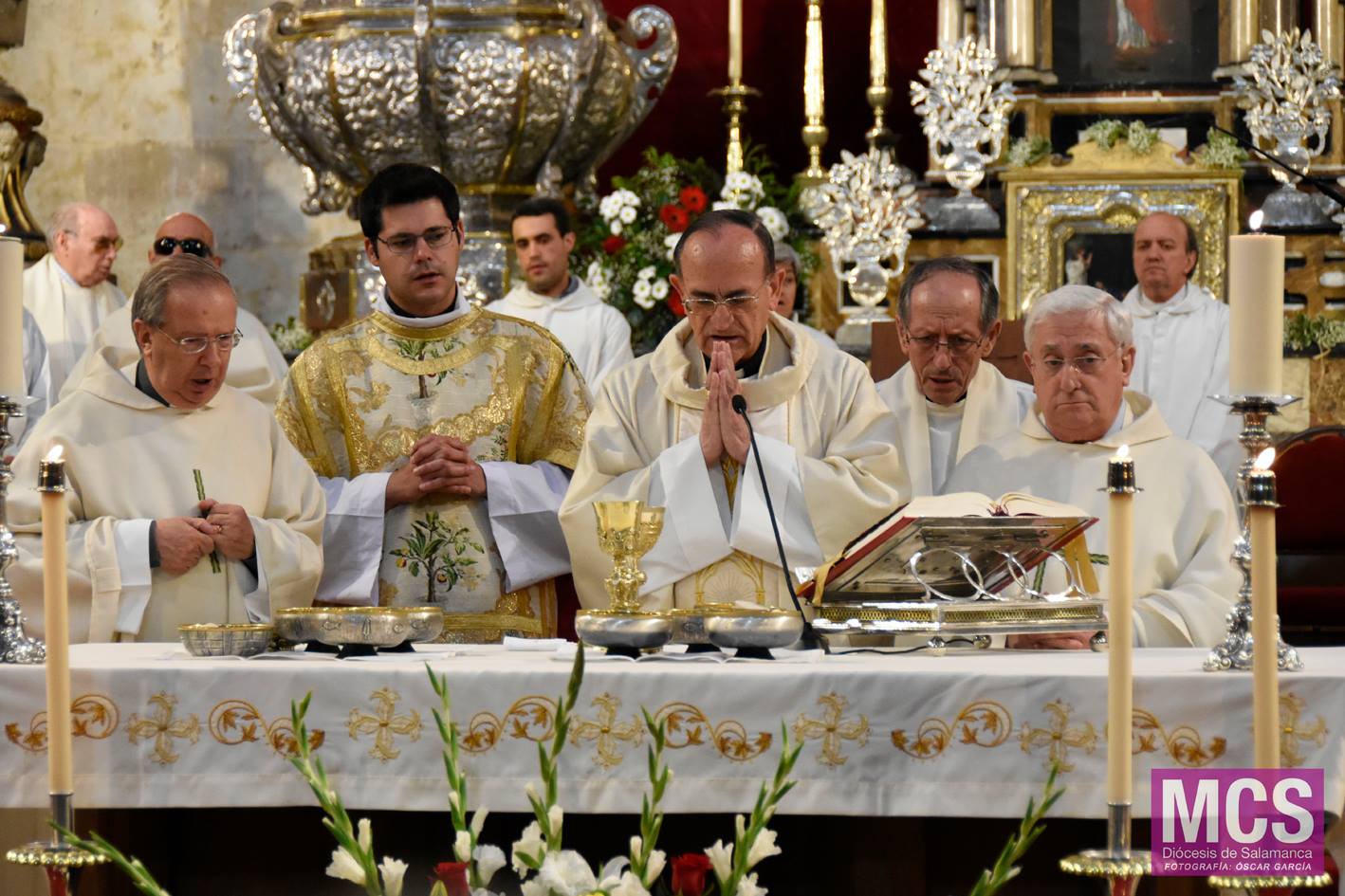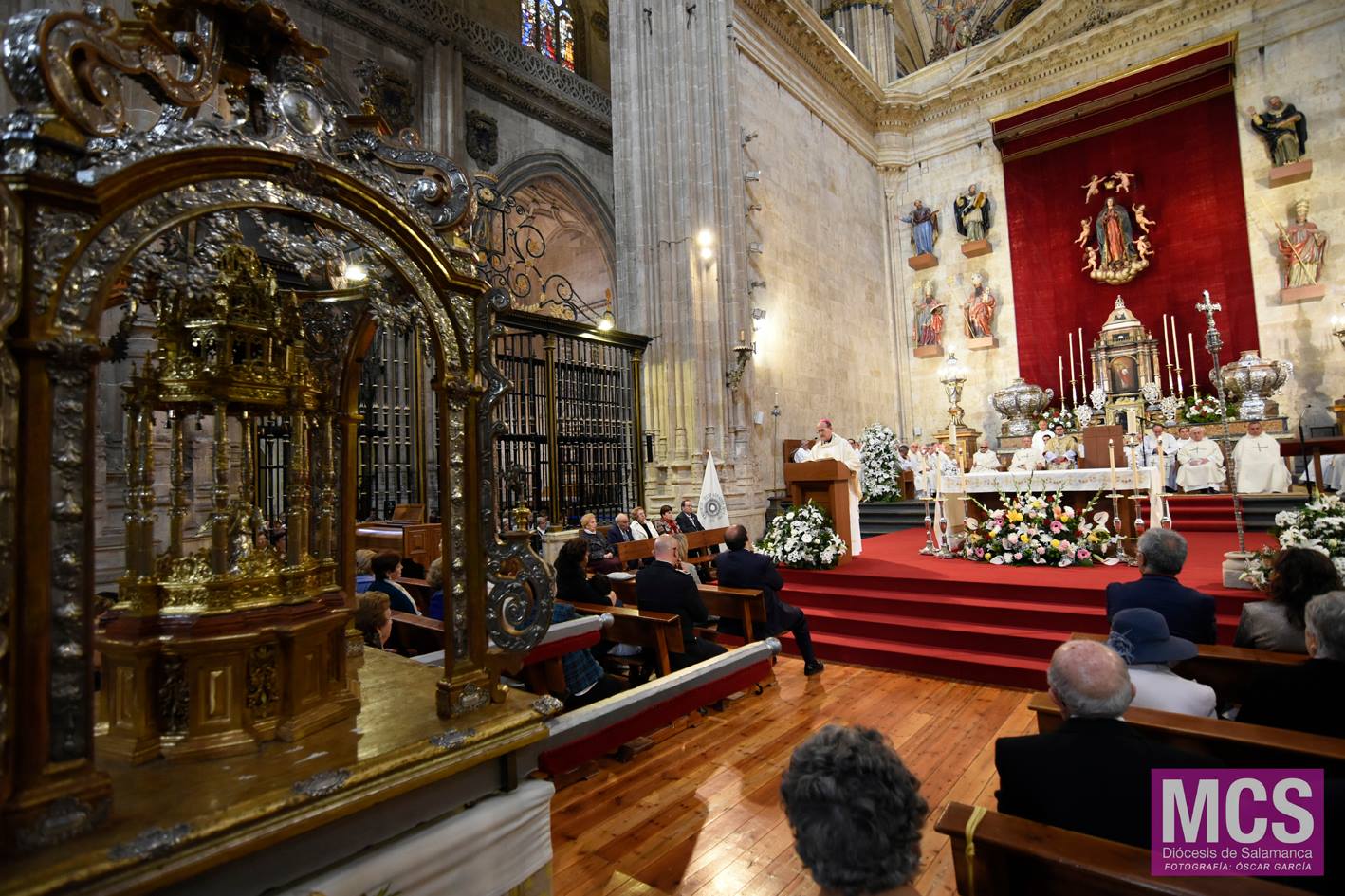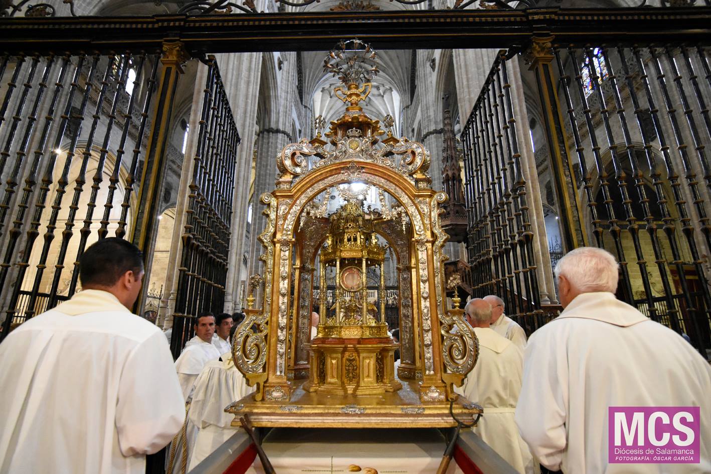 Al término de la eucaristía se celebró la procesión del Santísimo por las calles del casco histórico de Salamanca, que culminó en el atrio de la Catedral con la bendición solemne. Para la ocasión se instalaron dos altares, uno de ellos junto a la puerta de la iglesia de San Sebastián con las imágenes de La Purísima, Santo Tomás de Aquino, Santa Teresa de Jesús y San Pedro Nolasco, para recordar el IV Centenario del voto inmaculista de Salamanca, el VIII Centenario de la Universidad de Salamanca, el Año Jubilar Teresiano así como el VIII Centenario de la Orden Mercedaria. El segundo altar se ubicó junto a la Puerta de Ramos de la Catedral Nueva donde se encontraba la imagen de Nuestro Padre Jesús de la Redención, de la Archicofradia del Rosario, que plasma el momento de la institución de la Eucaristía, obra de José Antonio Navarro Arteaga.