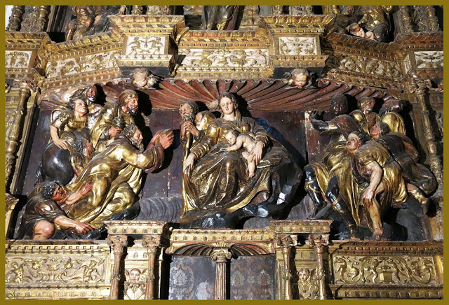 En el interior de uno de los cubos de luz, que conmemora los 25 años de la exposición de Edades del Hombre en Salamanca, aparecen distintas obras de arte que nos acercan al tiempo de Navidad. Nos referimos al tercer cubo, el que está en el transepto norte de la Catedral Nueva. Antes de entrar, ya admiramos y distinguimos de inmediato el grupo escultórico de la Epifanía o Adoración de los Magos de Alonso Berruguete, realizado para el retablo de una de las capillas de la iglesia de Santiago de Valladolid. El encargo fue realizado por el banquero don Diego de la Haya el 30 de junio de 1537 para presidir la capilla familiar que éste tenía en dicha iglesia. Entre las condiciones que puso el adinerado banquero estaban que todo el retablo tuviera un acabado dorado, que la escena del Nacimiento de Jesús ocupara un lugar destacado y que aparecieran retratados como donantes tanto él como su esposa doña Catalina Barquete. El resto del retablo quedaba a la libre creatividad e inspiración del escultor. Lo que pretendía Don Diego de la Haya era aumentar su prestigio, por medio de un artista de fama, el cual cinco años antes se la ganó con el impresionante retablo para el monasterio de San Benito el Real, hoy en el Museo Nacional de Escultura de Valladolid. La relación de Berruguete con este banquero creció, hasta llegar a formar parte de su familia, ya que dos de sus hijas se casaron con dos nietos de don Diego.