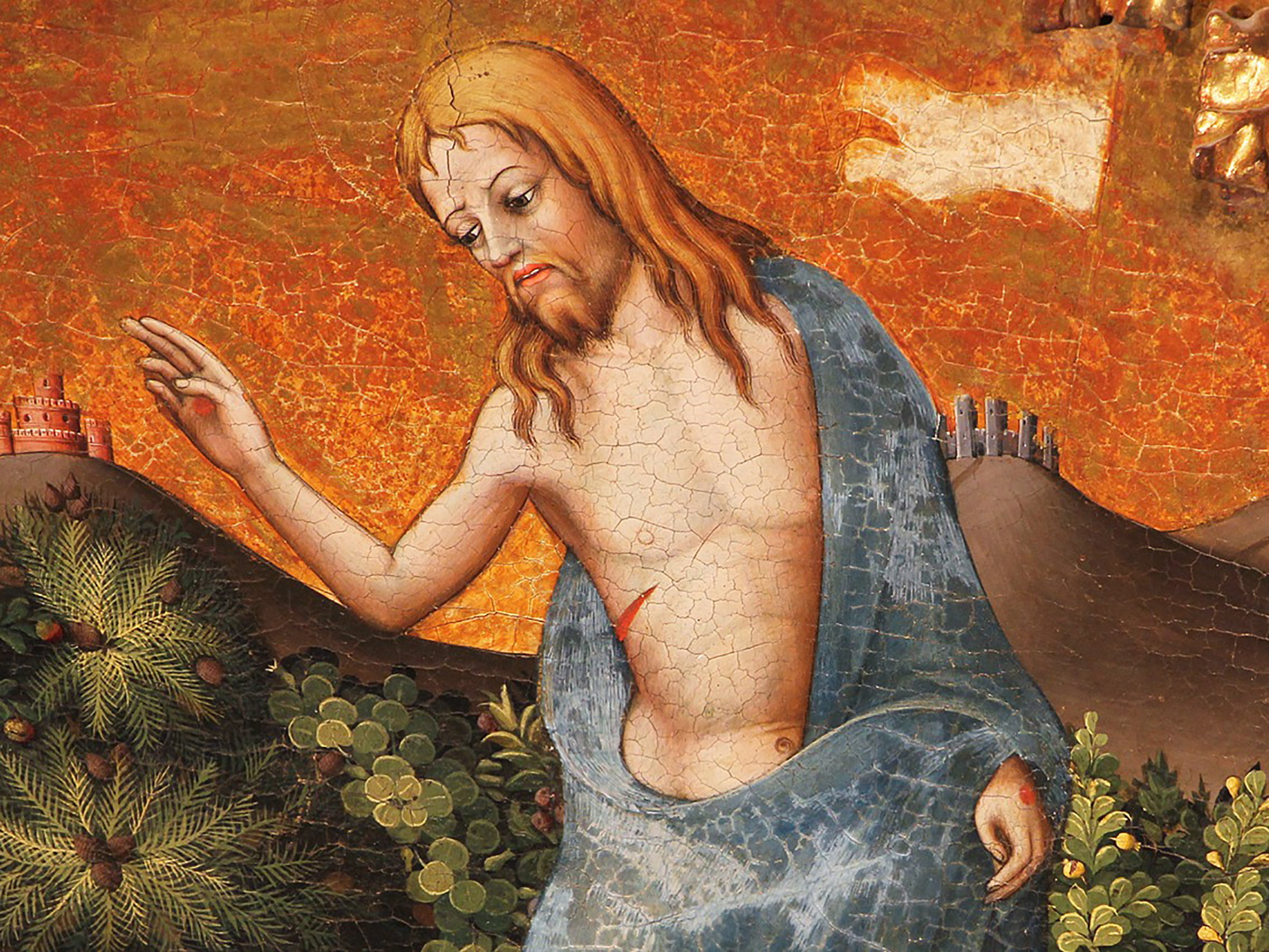El gesto de victoria del Resucitado sobre sus enemigos derrotados no es la venganza y la esclavitud, sino la bendición con su mano derecha. Los árboles cargados de frutos, los que aparecen por detrás, evocan el Paraíso, lugar donde la humanidad pecó y vino la maldición de la muerte, pero en el día de la resurrección ha sucedido lo contrario, por Jesús nos ha venido la gracia y la bendición de una vida nueva e inmortal (cf. Rom 5, 12-20).