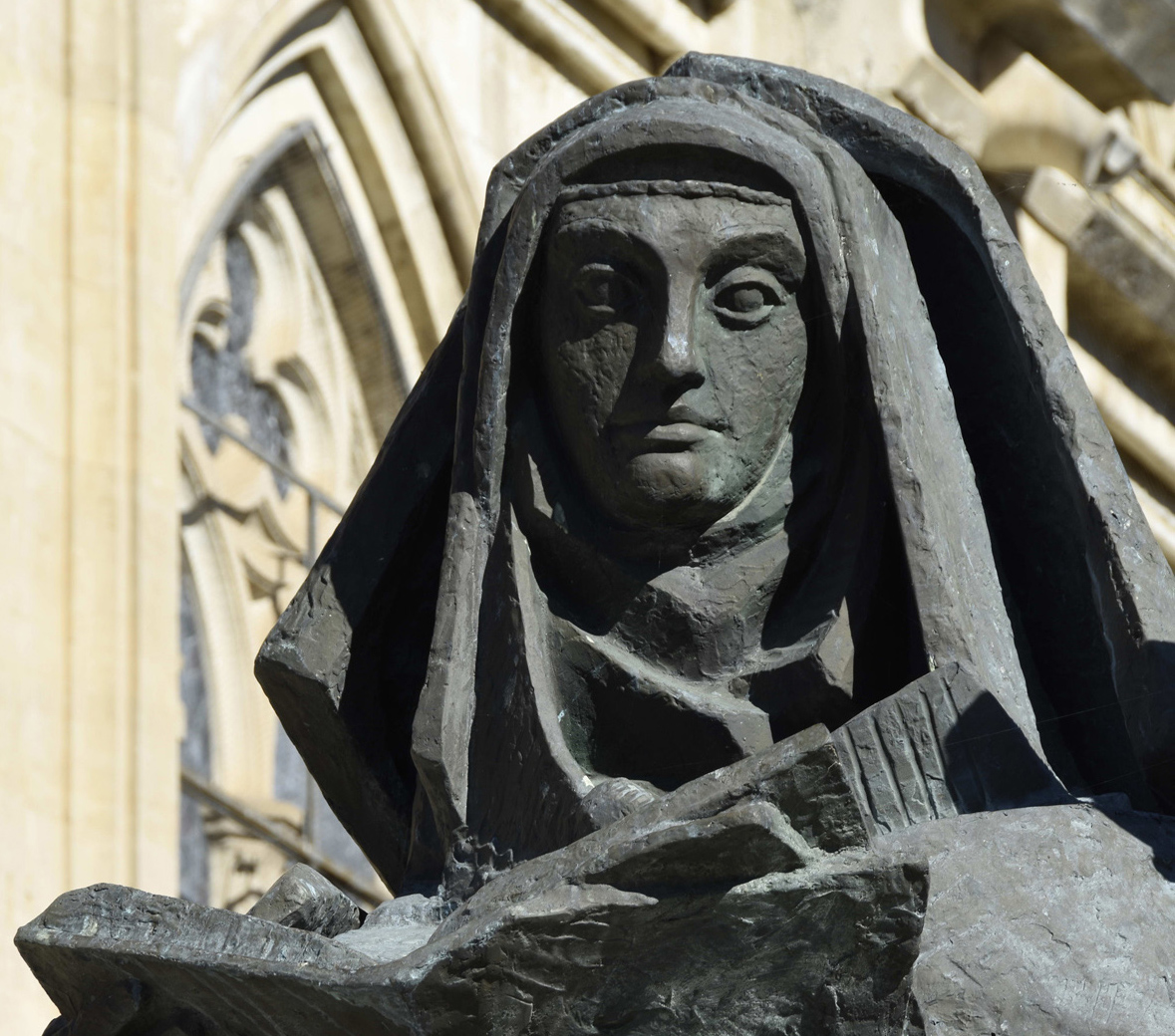 Y, por último, la lectura del libro y la compañía del Espíritu Santo la convierten en doctora de la Iglesia, pero no de aulas y de birretes, sino de los caminos nuevos abiertos tras Jesús. Doctora en el silencio, en la abstinencia, en la pobreza de Cristo, en la Eucaristía, en la fraternidad. Doctora en la ternura de Dios y en la compasión con los hermanos. Detalles todos que se recogen mejor que en ninguna parte en el rostro, en el que concentra Venancio toda su expresión, en el que se percibe a la vez el cansancio, la tensión y la serenidad. Parece como si el escultor dispusiera en la cabeza de la santa un escenario en el que ella misma actúa, en el que permanece y en el que nada de lo que le ocurra le es indiferente o se le escapa. El rostro expresionista de santa Teresa se debate en un contraste entre la serenidad, propia de su vida contemplativa, y la fuerza de una mujer recia que sabe enfrentarse a los problemas del mundo y de la Iglesia, confiando plenamente en el “libro vivo” del Evangelio de Jesús.