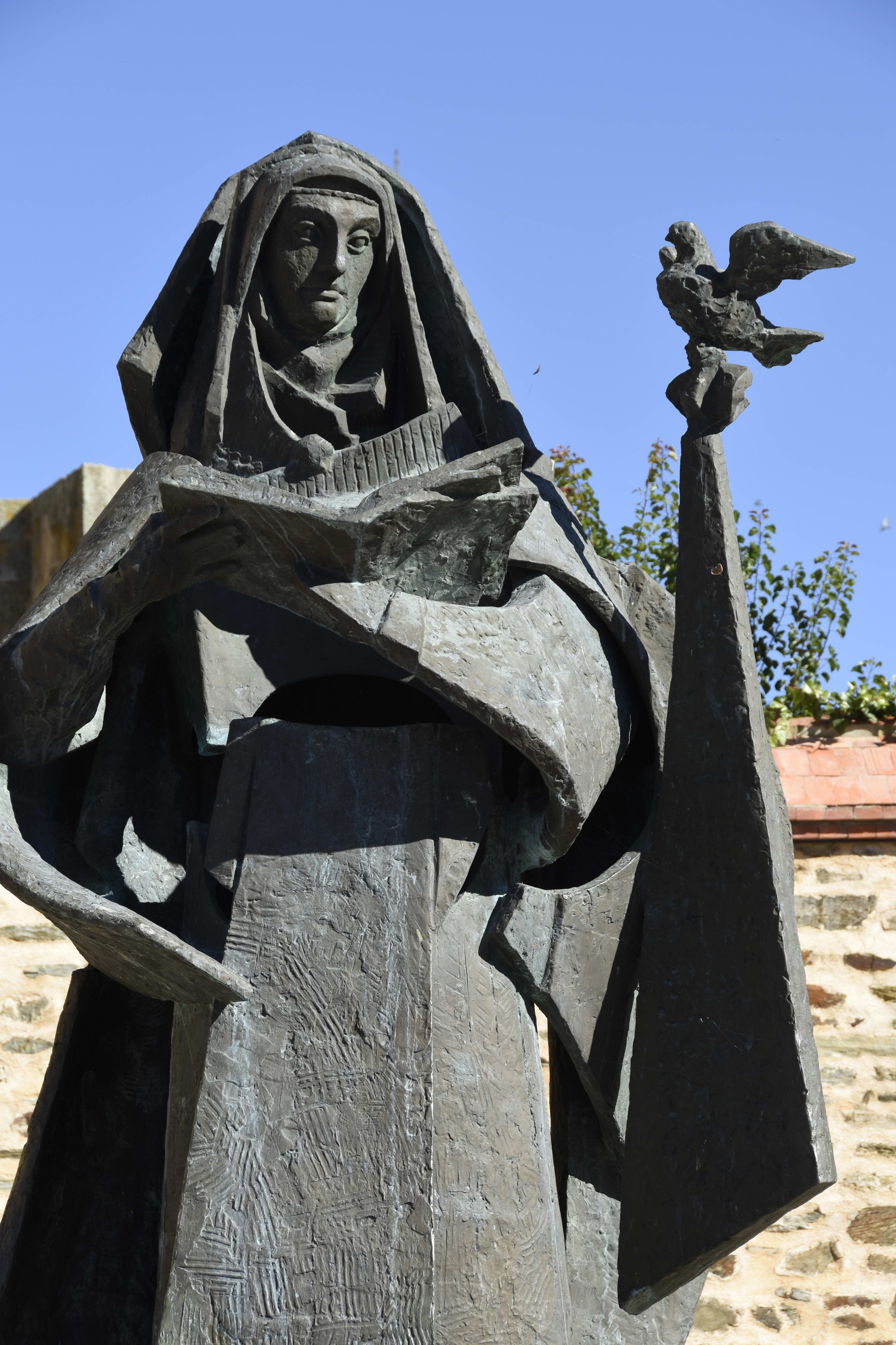 En la Plaza del Peregrino, junto a la basílica de Santa Teresa de Alba de Tormes (Salamanca), se coloca en 1977 un monumento dedicado a Santa Teresa de Jesús, diseñado por el salmantino Venancio Blanco, de Matilla de los Caños. El escultor responde a un encargo solicitado por la Hermandad de Santa Teresa, presidida por el entonces párroco de Alba, D. Florentino Gutiérrez, y sufragado gracias a una cuestación popular. En el contrato, firmado con el escultor en 1977, se le pedían fundamentalmente dos cosas: poder pagar el importe según la aportación de la gente; además, tenía que estar terminada la escultura antes del 15 de octubre, para ser inaugurada en la festividad de Santa Teresa de ese mismo año. En un documento escrito, conservado en la parroquia de Alba, se detallan todos estos datos, también lo que se entregó a Venancio Blanco, fruto de la recaudación popular: ochocientas mil pesetas. El importe total, dos millones quinientas mil pesetas, debería abonarse según fuera aportando la gente. Por eso, cuando la pieza estaba a punto de salir de la fundición, el mismo escultor entusiasmado se refería a ella como el resultado «de todo un pueblo puesto en pie para costear este monumento». Sin embargo, al principio fue una obra polémica, no fue aceptada del todo, pues se salía de la representación estética del barroco o el romanticismo de Santa Teresa a la que se estaba acostumbrado el gusto de la gente. El paso del tiempo ha demostrado su gran valor artístico y, por lo tanto, la aceptación popular ha ido creciendo poco a poco, hasta el punto de ser el lugar favorito de los peregrinos para fotografiarse a la llegada o salida de Alba de Tormes. Se trata pues de una obra realizada en 1977 que, como suele suceder tantas veces con los artistas y sus obras, se adelanta a su tiempo, pero ahora conecta perfectamente con la sensibilidad estética de la humanidad del siglo XXI.