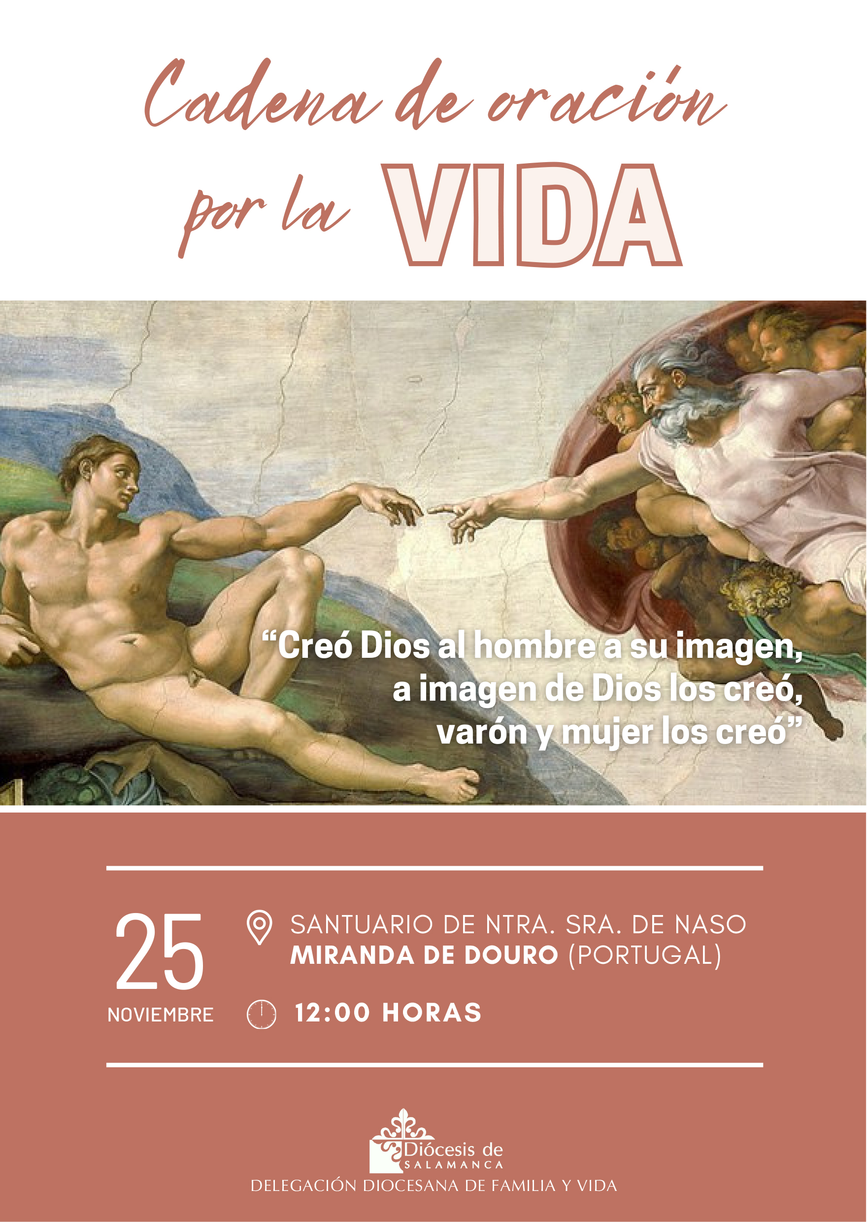 La Delegación diocesana de Familia y Vida promueve desde hace tres años una cadena de oración por la vida, que se celebra el día 25 de cada mes. El objetivo de esta iniciativa es orar para proteger la vida humana en cada etapa, desde su concepción hasta la muerte natural, y favorecer una cultura de la vida que respete a cada individuo como hijo de Dios.