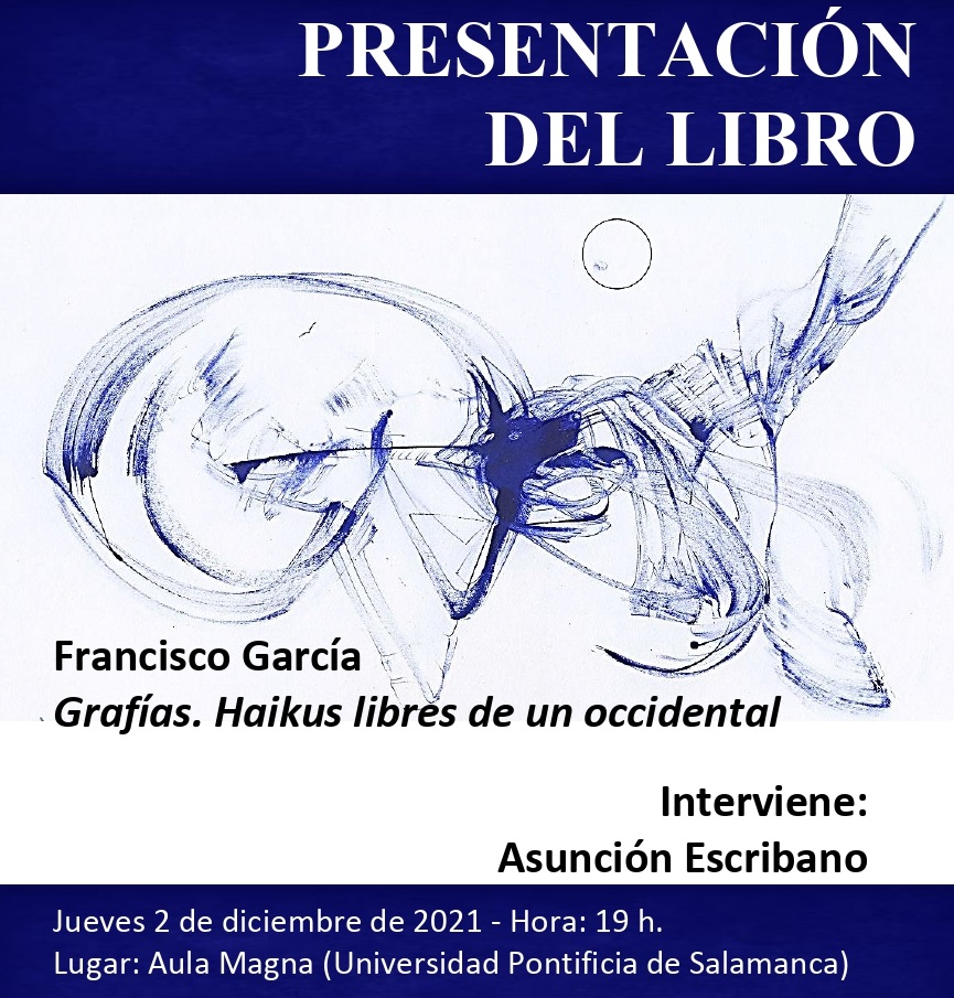 Francisco García, decano de la Facultad de Teología de la Universidad Pontificia de Salamanca, presentará el jueves, 2 de diciembre, su nuevo libro “Grafías. Haikus libres de un occidental”, en un acto que será conducido por Asunción Escribano, escritora y catedrática de “Lengua y Literatura españolas” de la Facultad de Comunicación de la UPSA. La presentación dará comienzo a las 19:00 horas en el Aula Magna de la Pontificia.