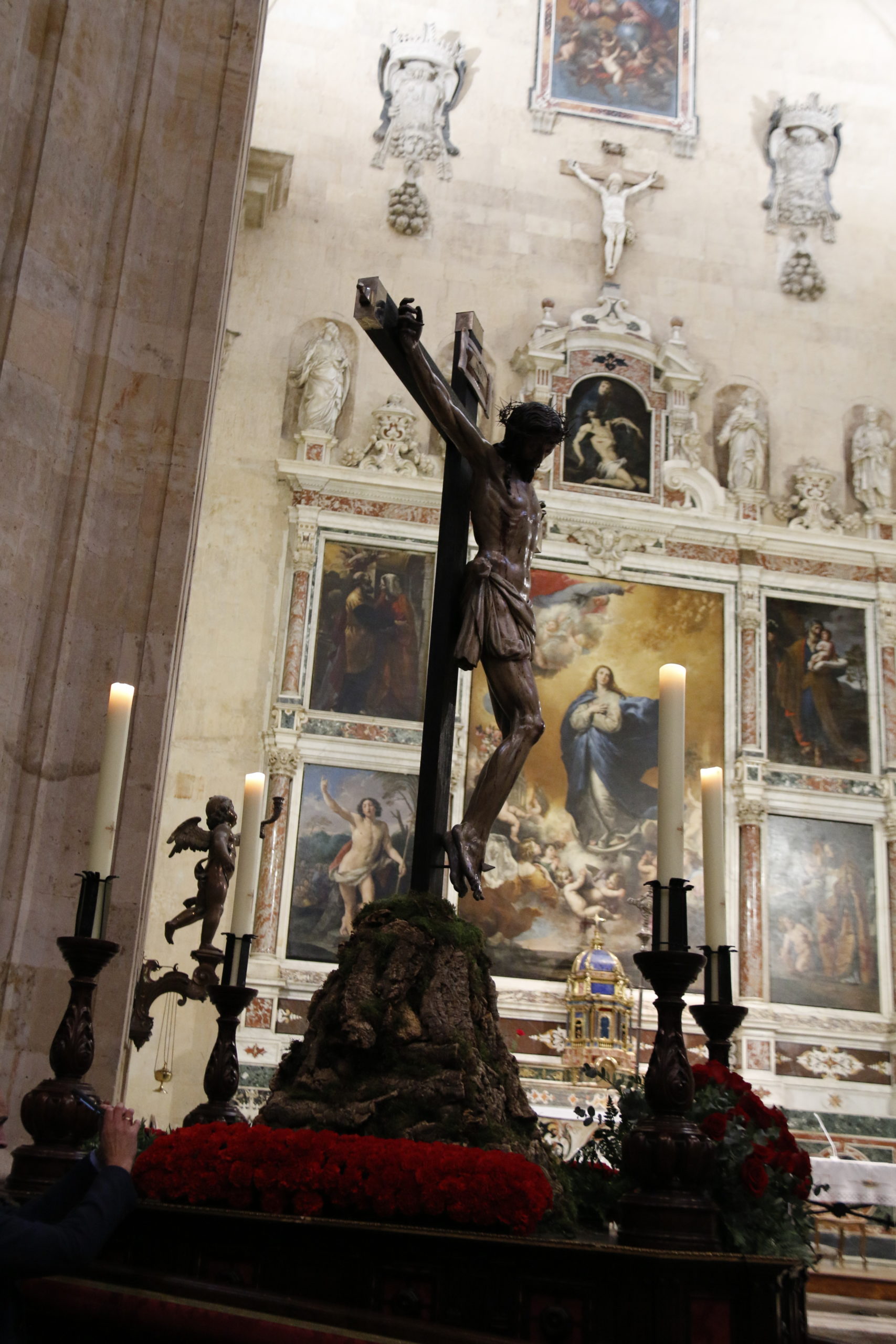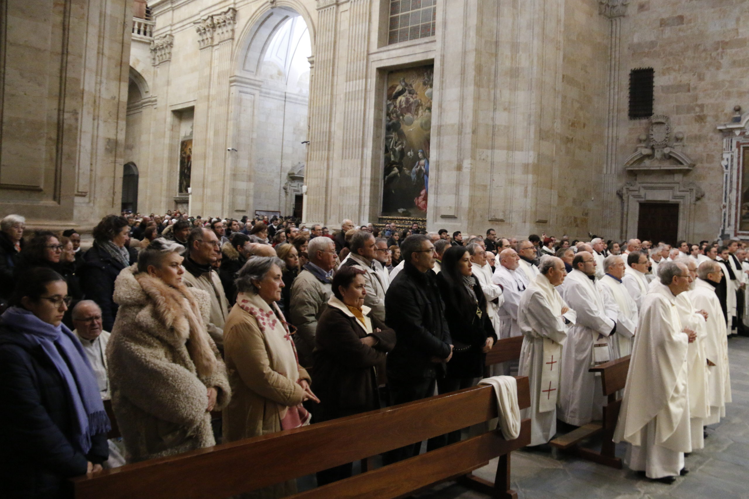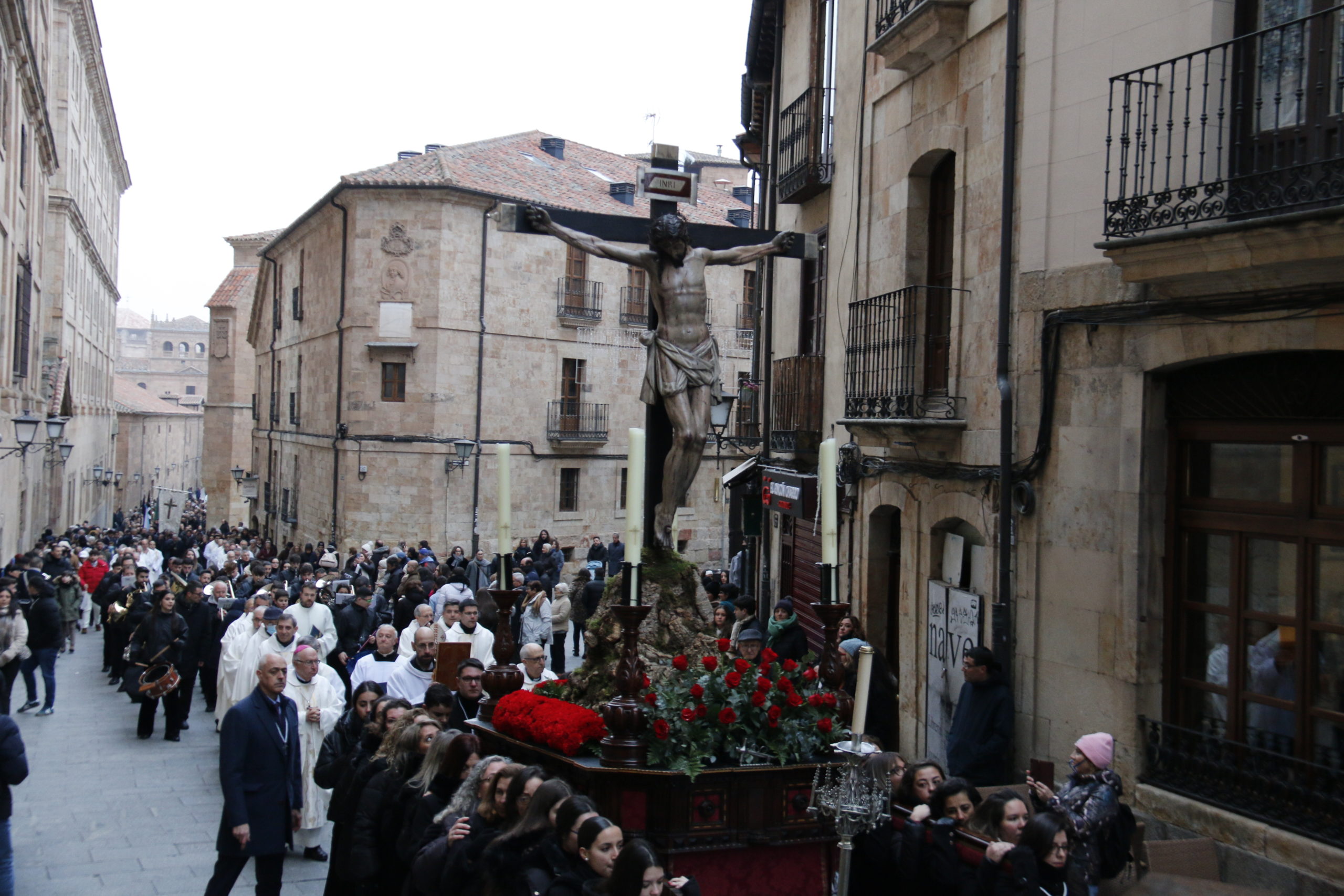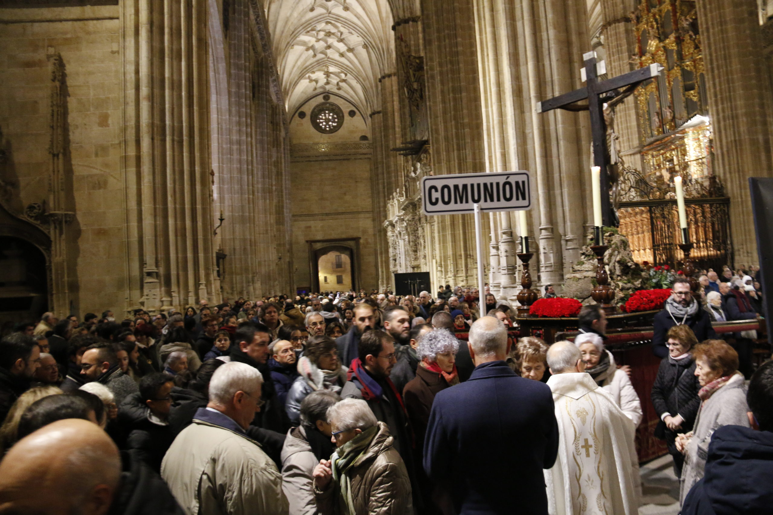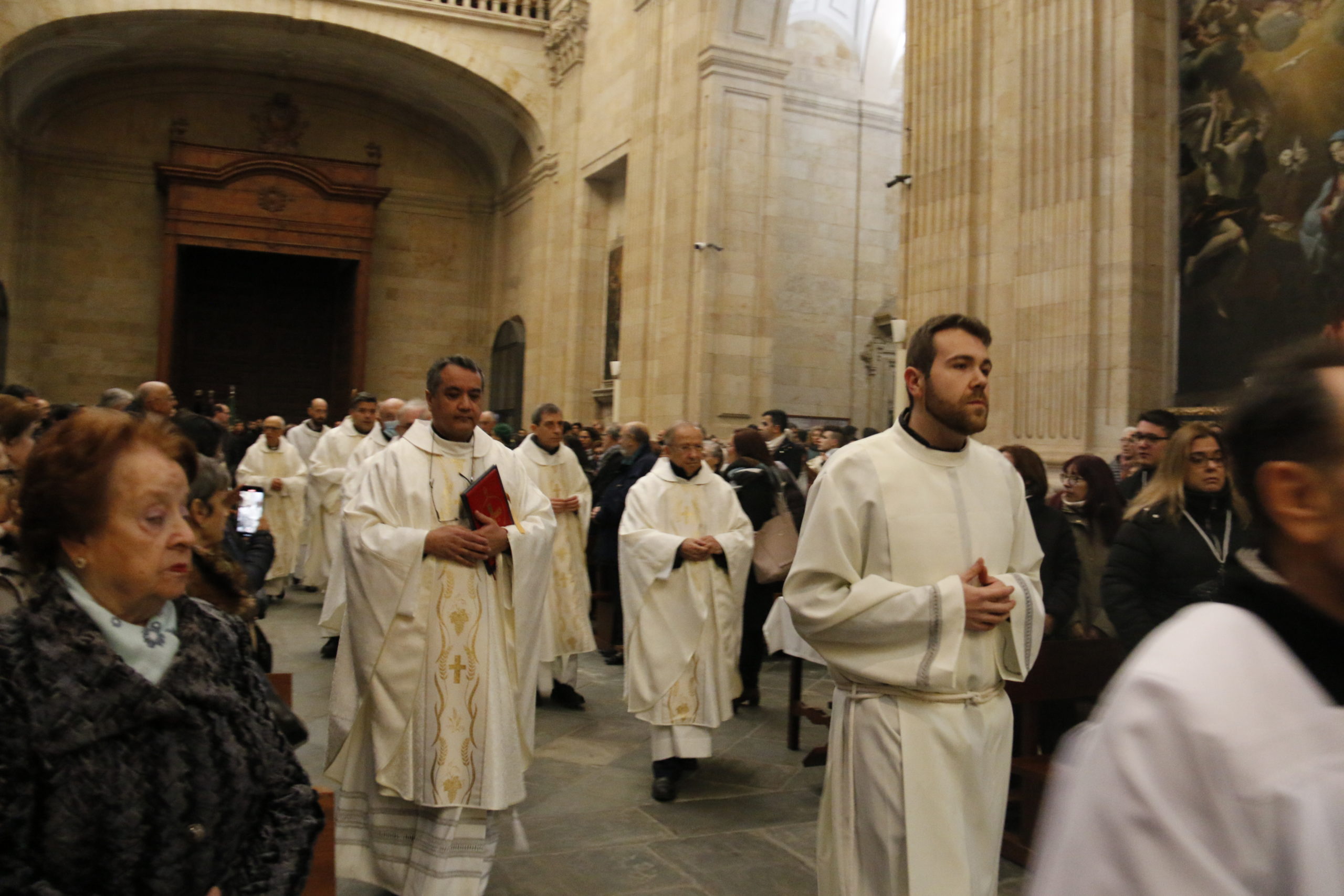 La Iglesia de Salamanca celebró este domingo, 29 de diciembre, la apertura diocesana del Jubileo ordinario de 2025 “Peregrinos de la Esperanza”, inaugurado por el papa Francisco el pasado 24 de diciembre. El rito de apertura comenzó con la denominada “collectio” (reunión) del Pueblo de Dios en la parroquia de La Purísima. En este templo se realizaron los ritos introductorios de la celebración, junto a la imagen de un Crucificado, que en esta ocasión fue el Cristo del Amor y de la Paz, que abriría la peregrinación posterior.