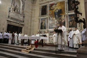 Después de la proclamación del Evangelio, varios responsables de la Comisión diocesana para el Jubileo leyeron extractos de la bula de convocatoria “Spes non confundit”. Durante ese momento, también se mencionó el significado de uno de los símbolos del Jubileo, el ancla, presente en la celebración, colocado junto al Cristo del Amor y de la Paz, que también se llevó en peregrinación hasta la Catedral. Un símbolo que transmite un mensaje de esperanza: “Las tempestades nunca podrán prevalecer, porque estamos anclados en la esperanza de la gracia”.