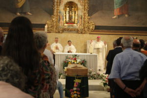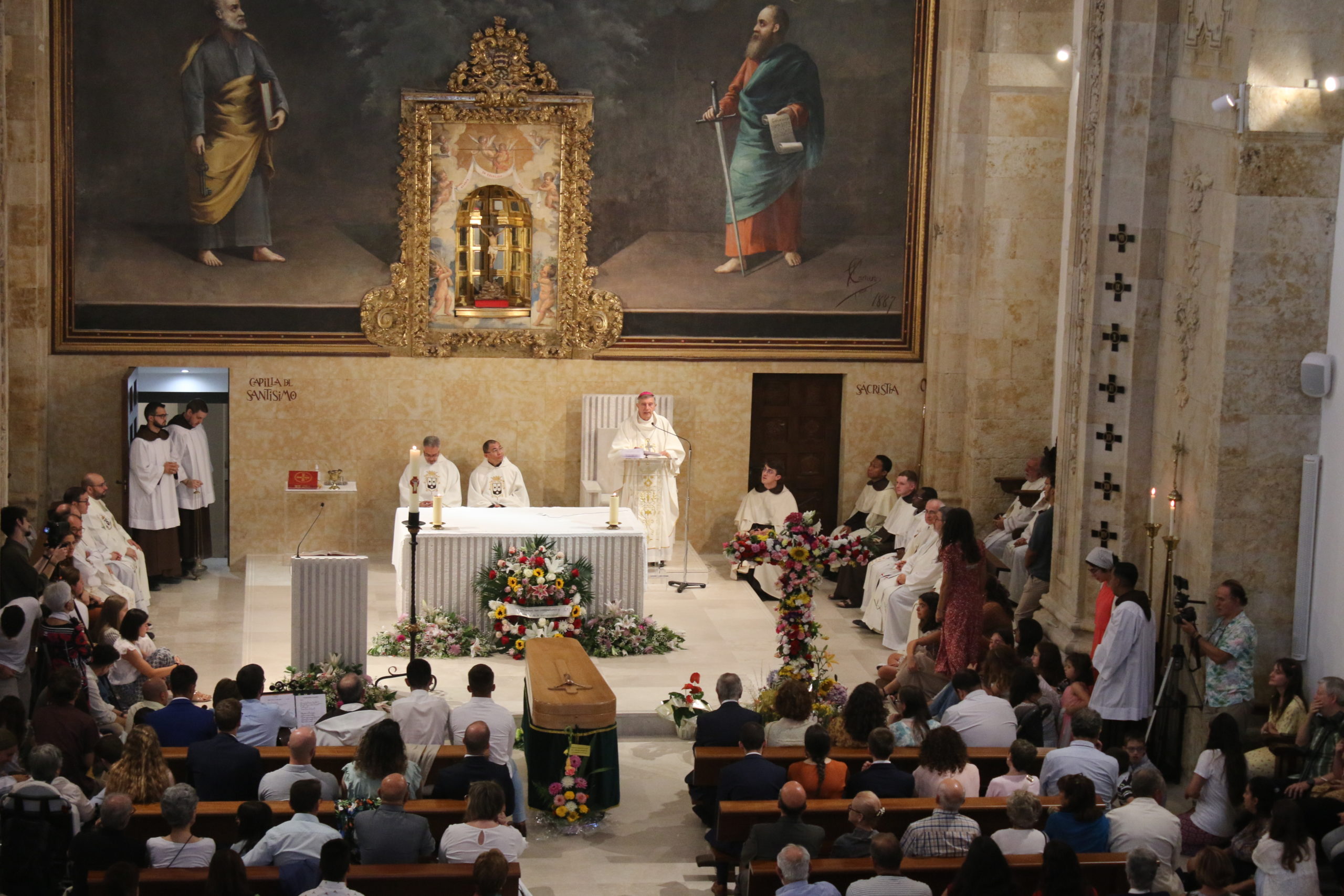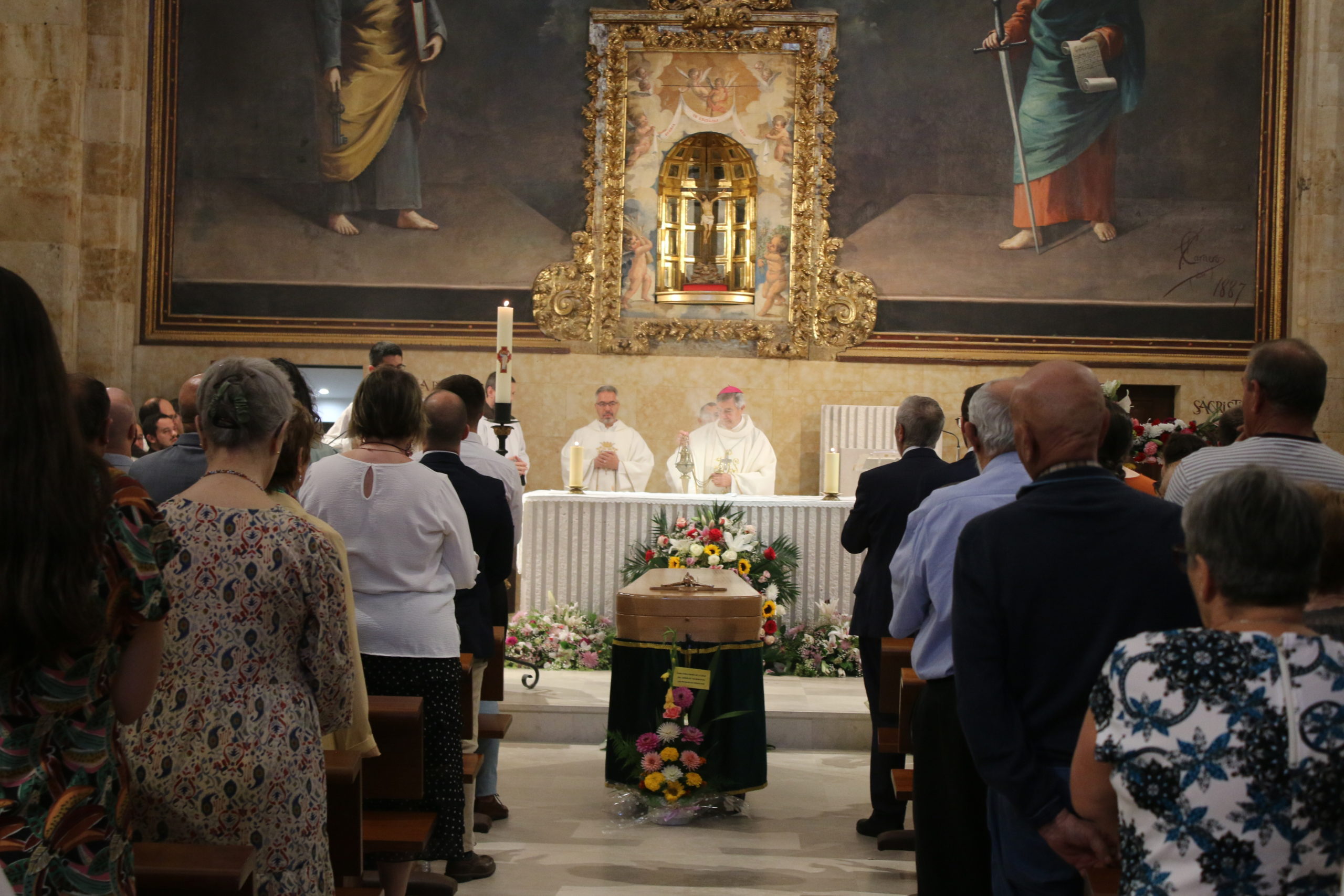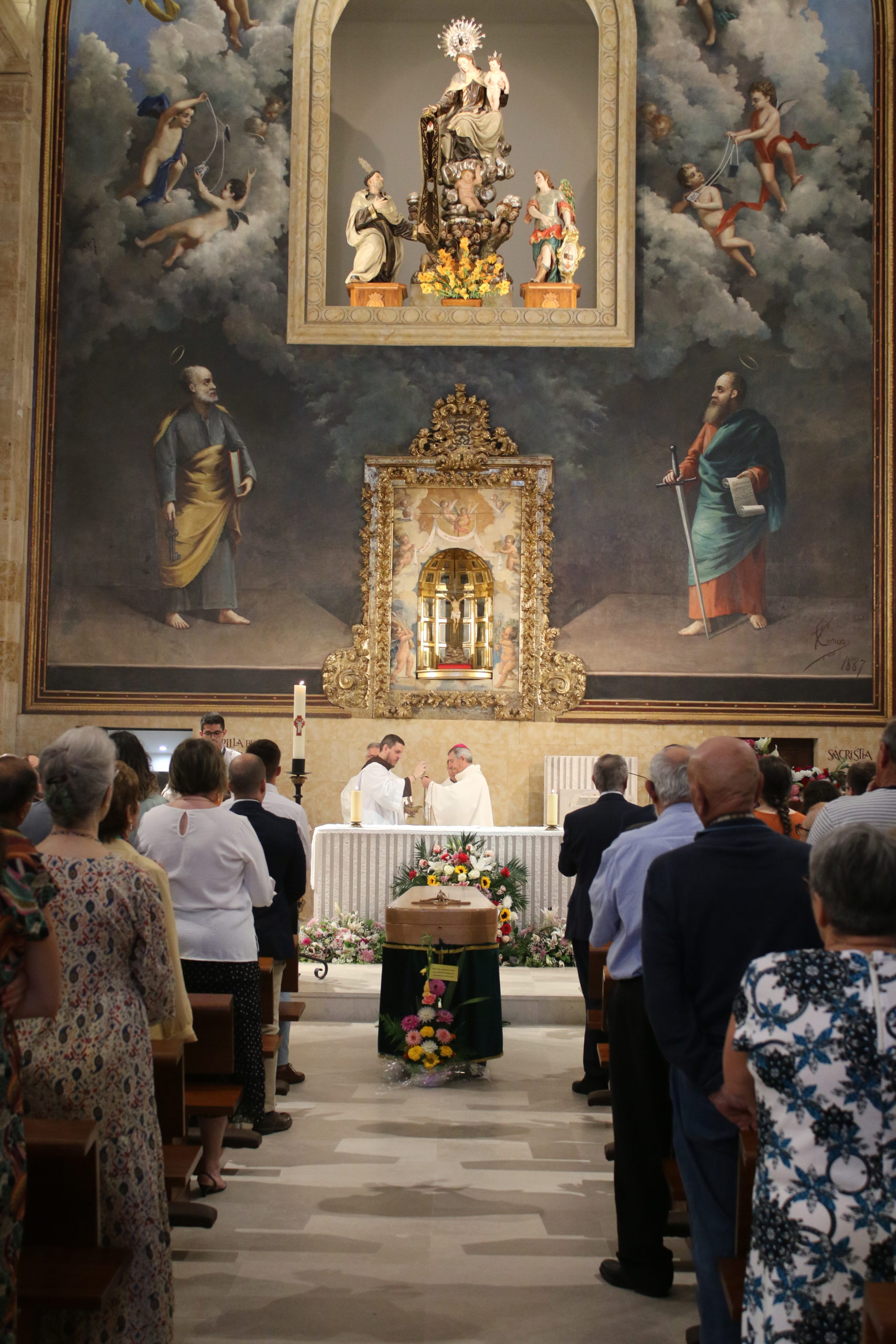 Tras el rezo de Laudes se reservó el Santísimo para celebrar, en el mismo clima festivo, la Misa funeral, que fue presidida por el obispo de Salamanca, Mons. José Luis Retana, y concelebrada por el prior provincial de la provincia carmelita de Aragón, Castilla y Valencia, el P. Salvador Villota, y cerca de una veintena de sacerdotes.