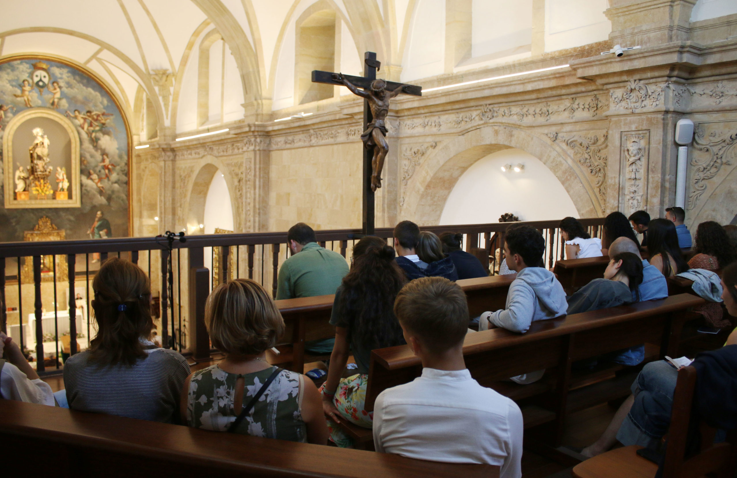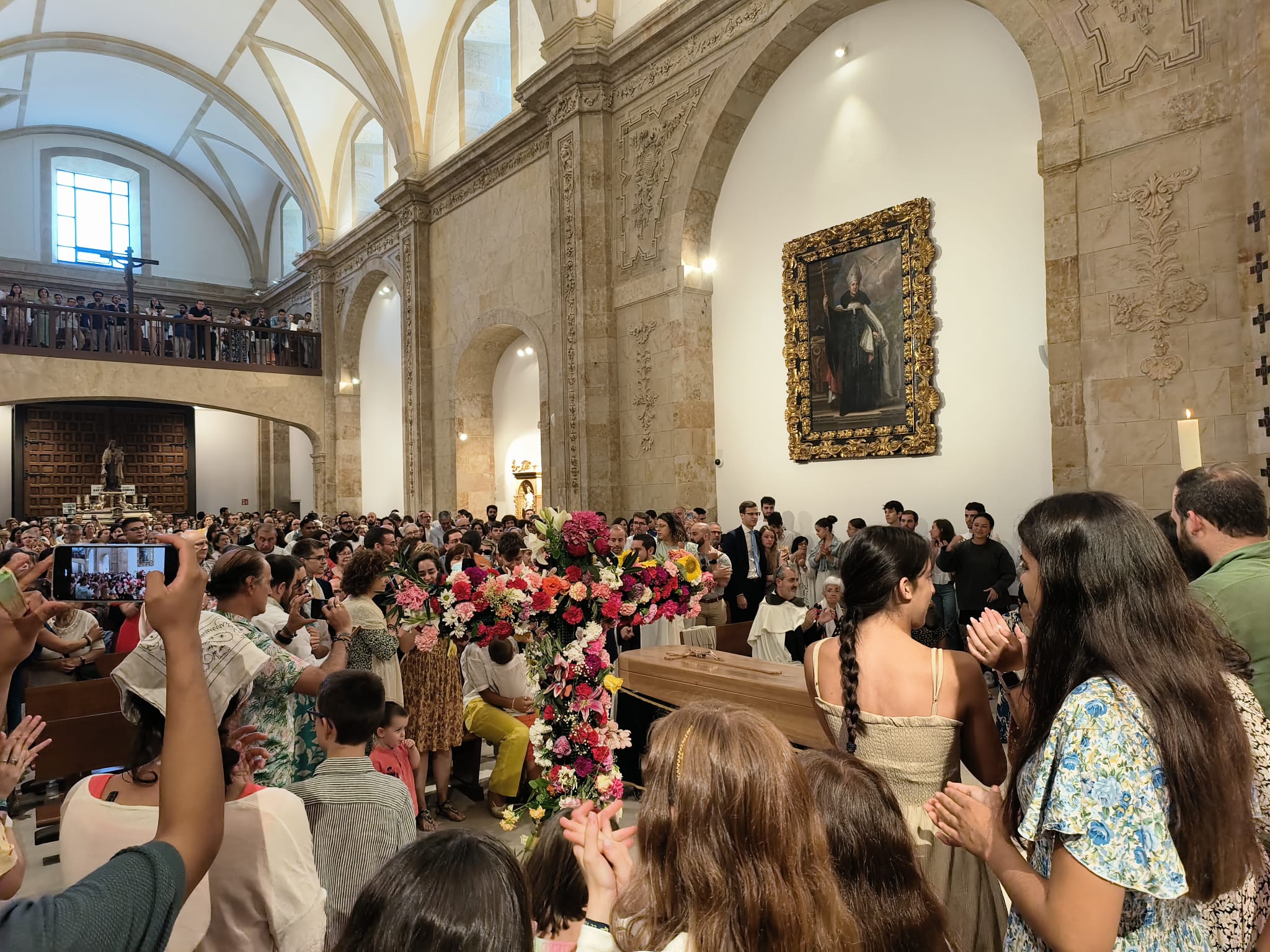 La iglesia del Carmen de Abajo de Salamanca se quedó pequeña este lunes, 17 de julio, para despedir a Fray Pablo María de la Cruz Alonso Hidalgo, el carmelita que ha transformado su muerte en una fiesta del abrazo en Cristo, que ilumina el camino y renueva la esperanza de todos los que le han conocido. Este joven, de 21 años, falleció en el Convento de San Andrés el pasado sábado, 15 de julio, víspera de la festividad de la Virgen del Carmen, a consecuencia de un sarcoma de Ewing que sufría desde hace seis años.