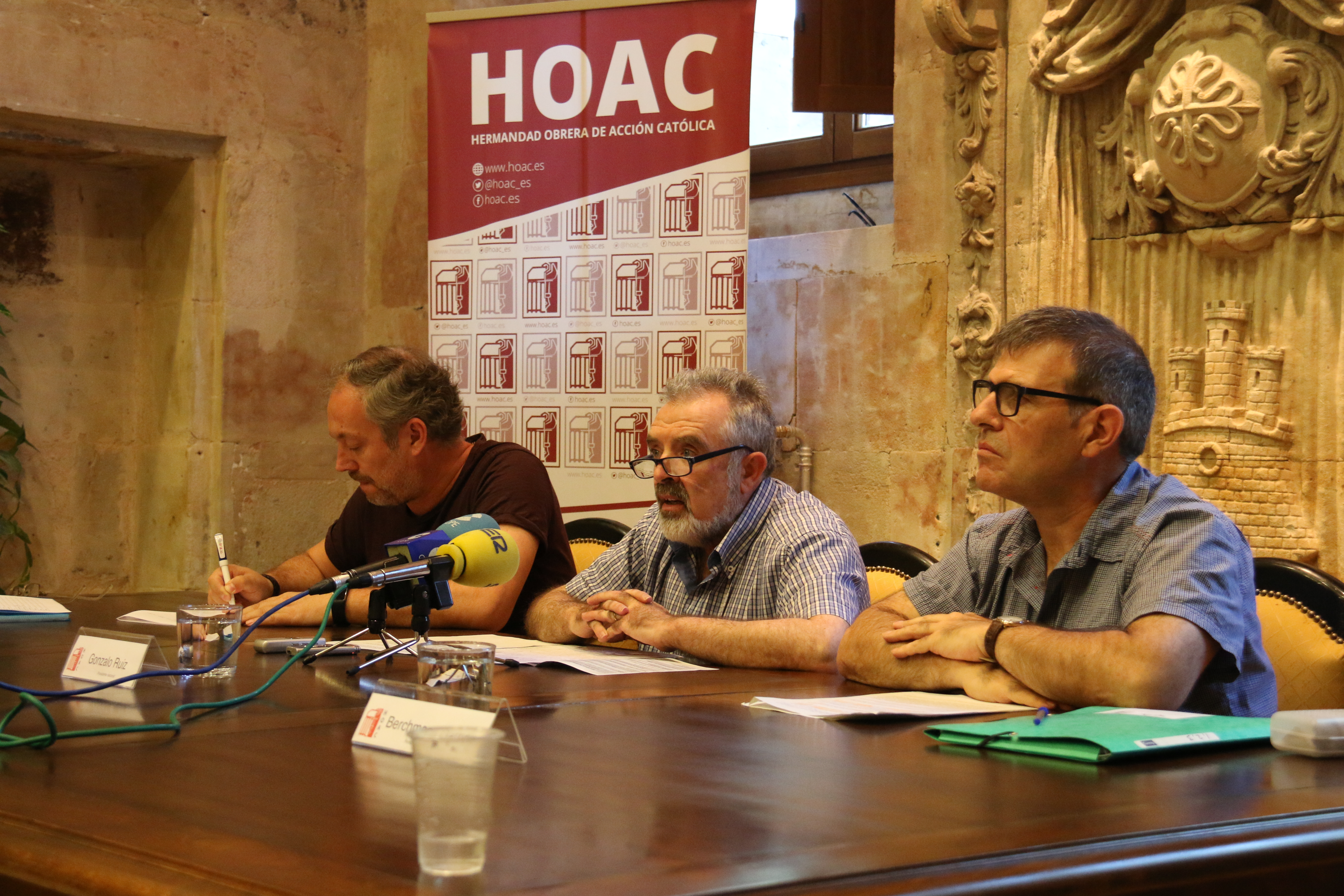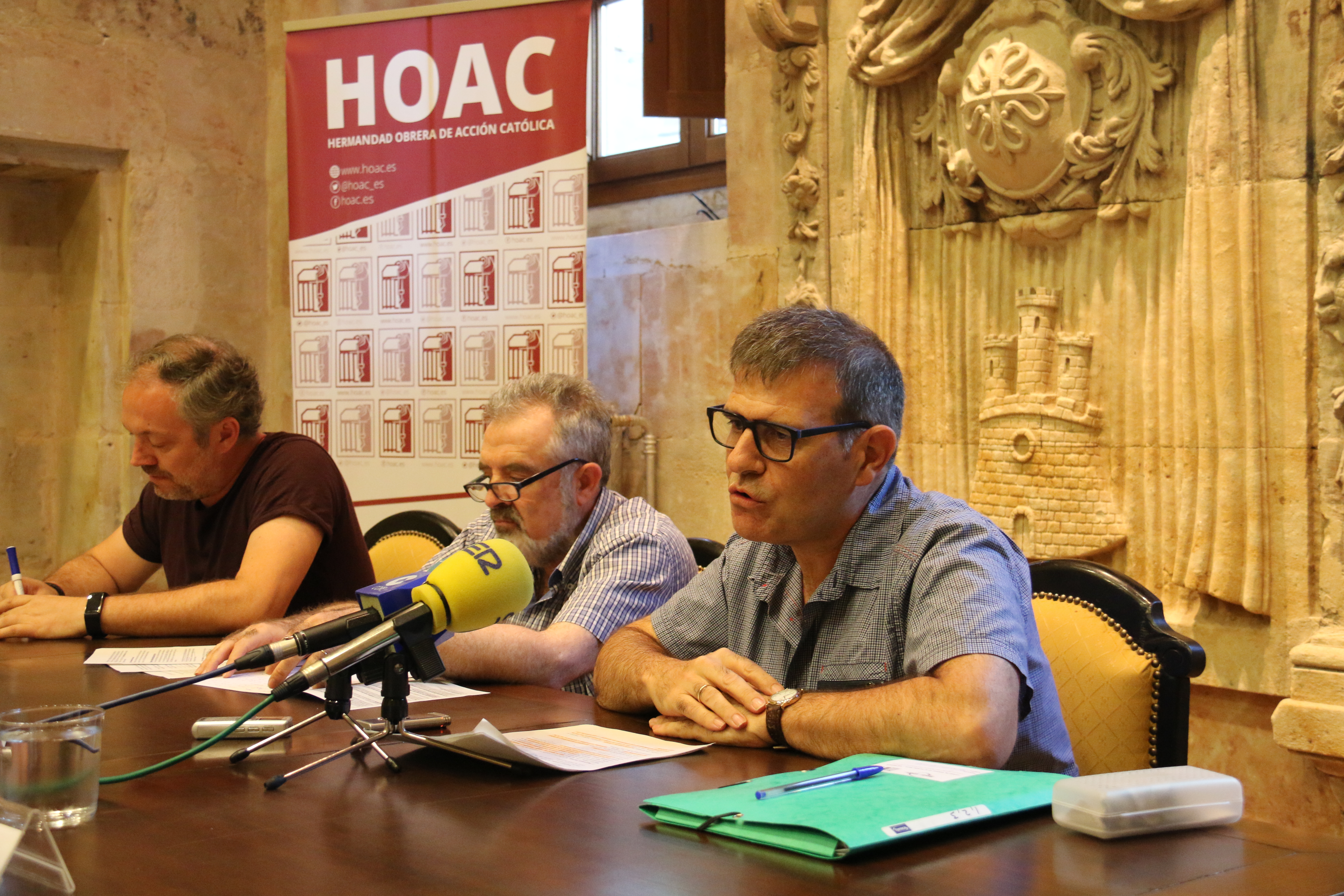 Esta mañana, en la sala Jovellanos de la Casa de la Iglesia de Salamanca, se han presentado los Cursos de Verano de la HOAC convocados bajo el lema “Ante el futuro del trabajo, fraternidad y justicia”, en una rueda de prensa en la que han participado el presidente y el responsable de Formación de este movimiento de Acción Católica especializado en el mundo obrero, Gonzalo Ruiz y Berchmans Garrido, respectivamente.
