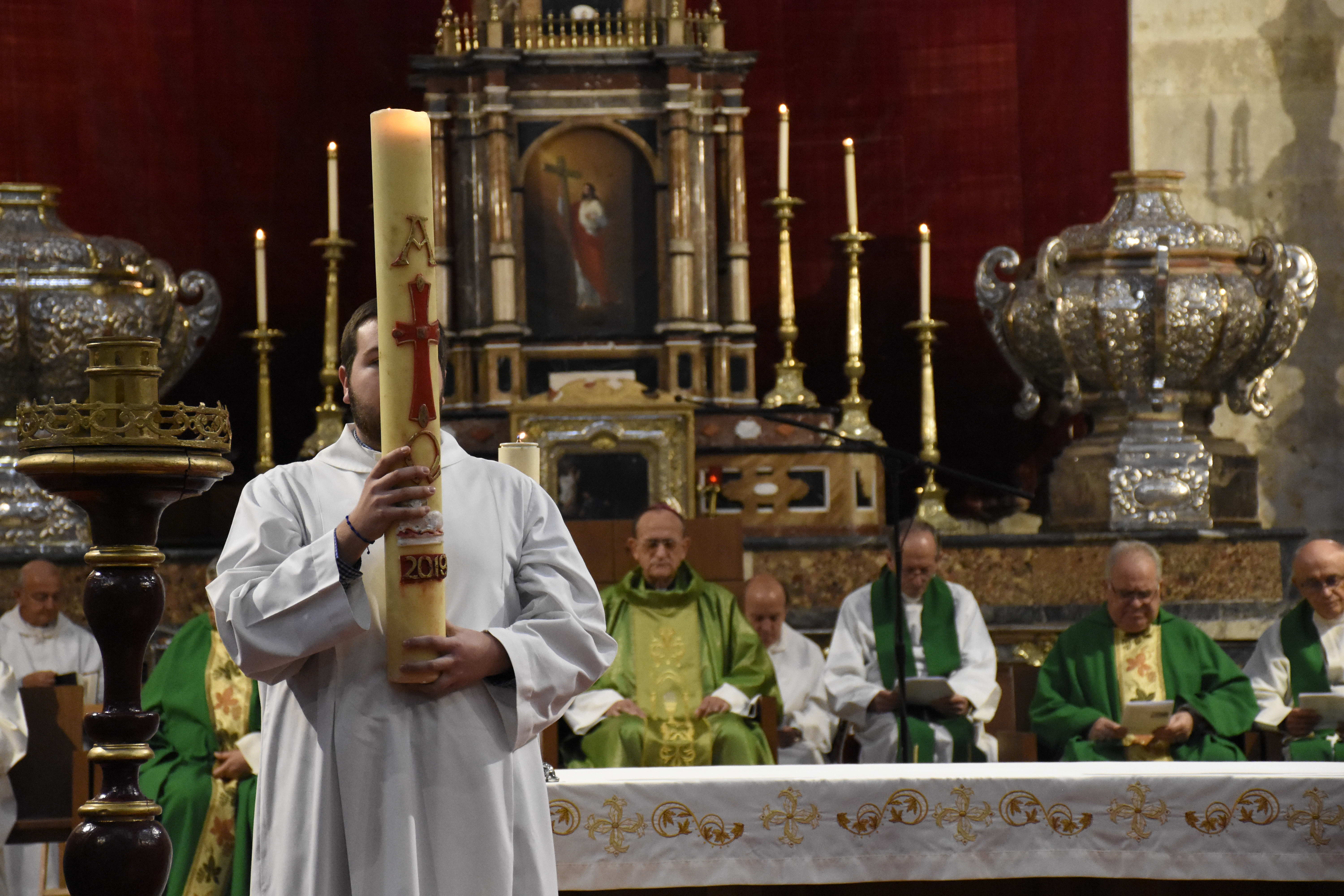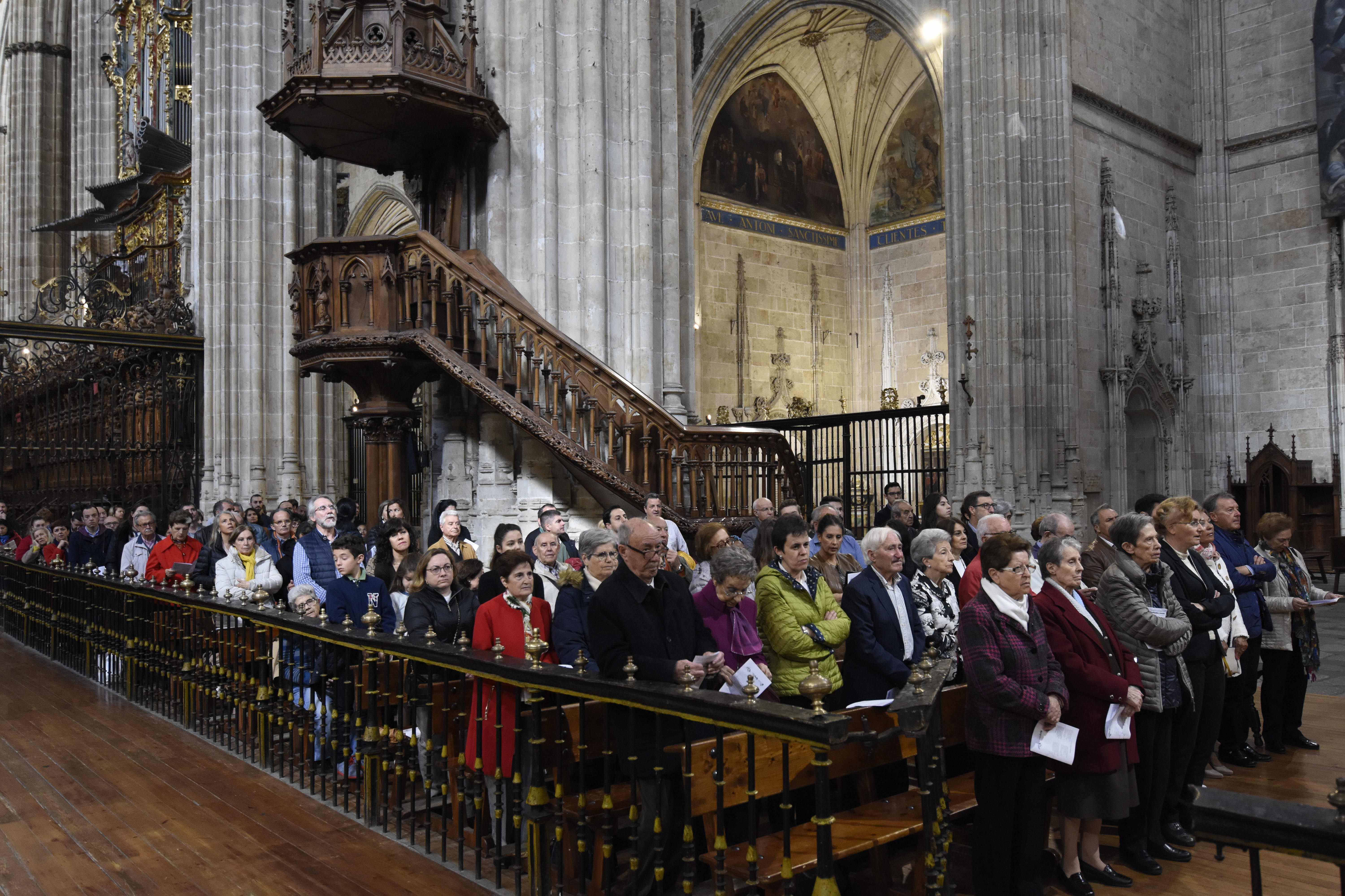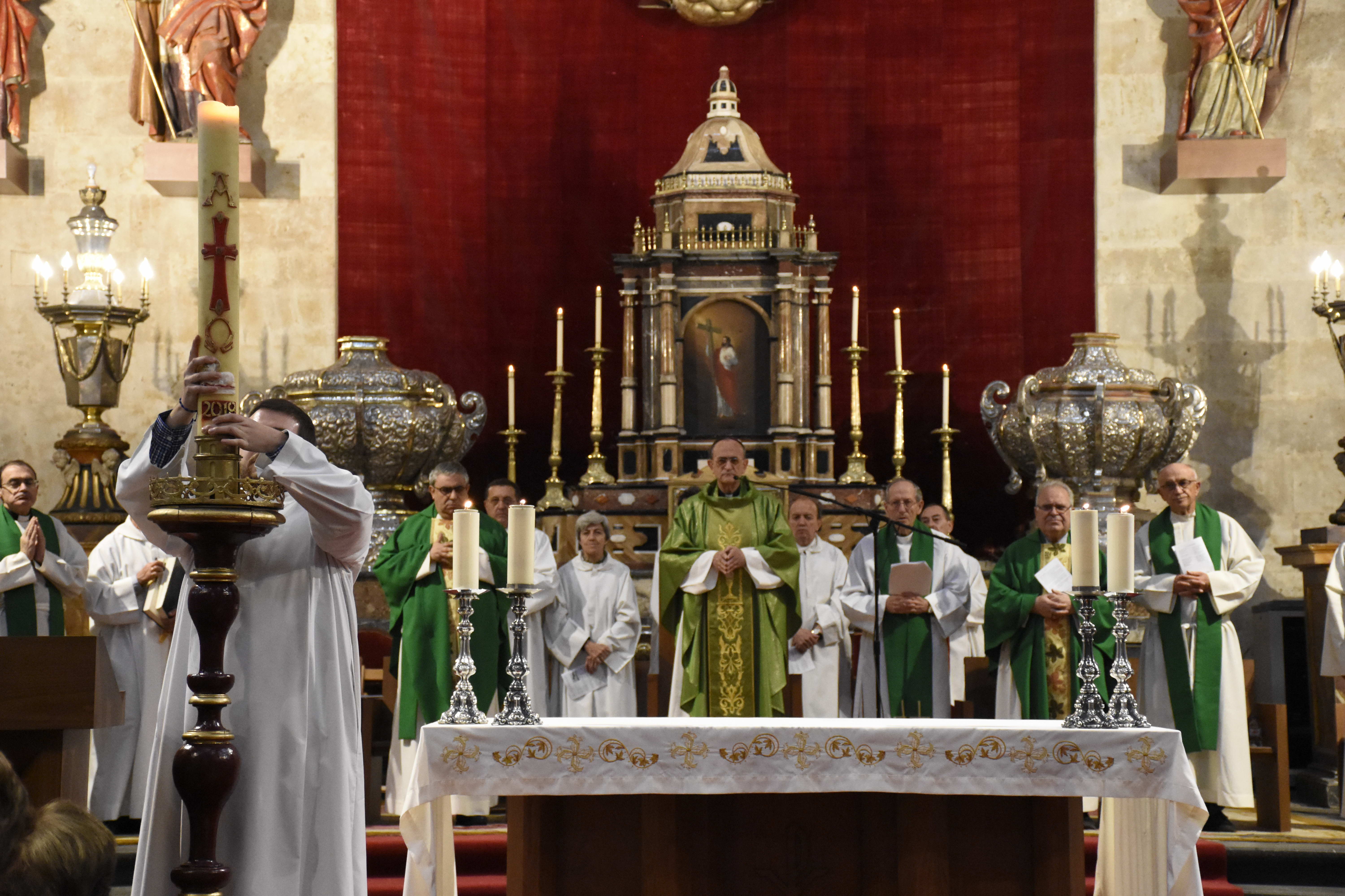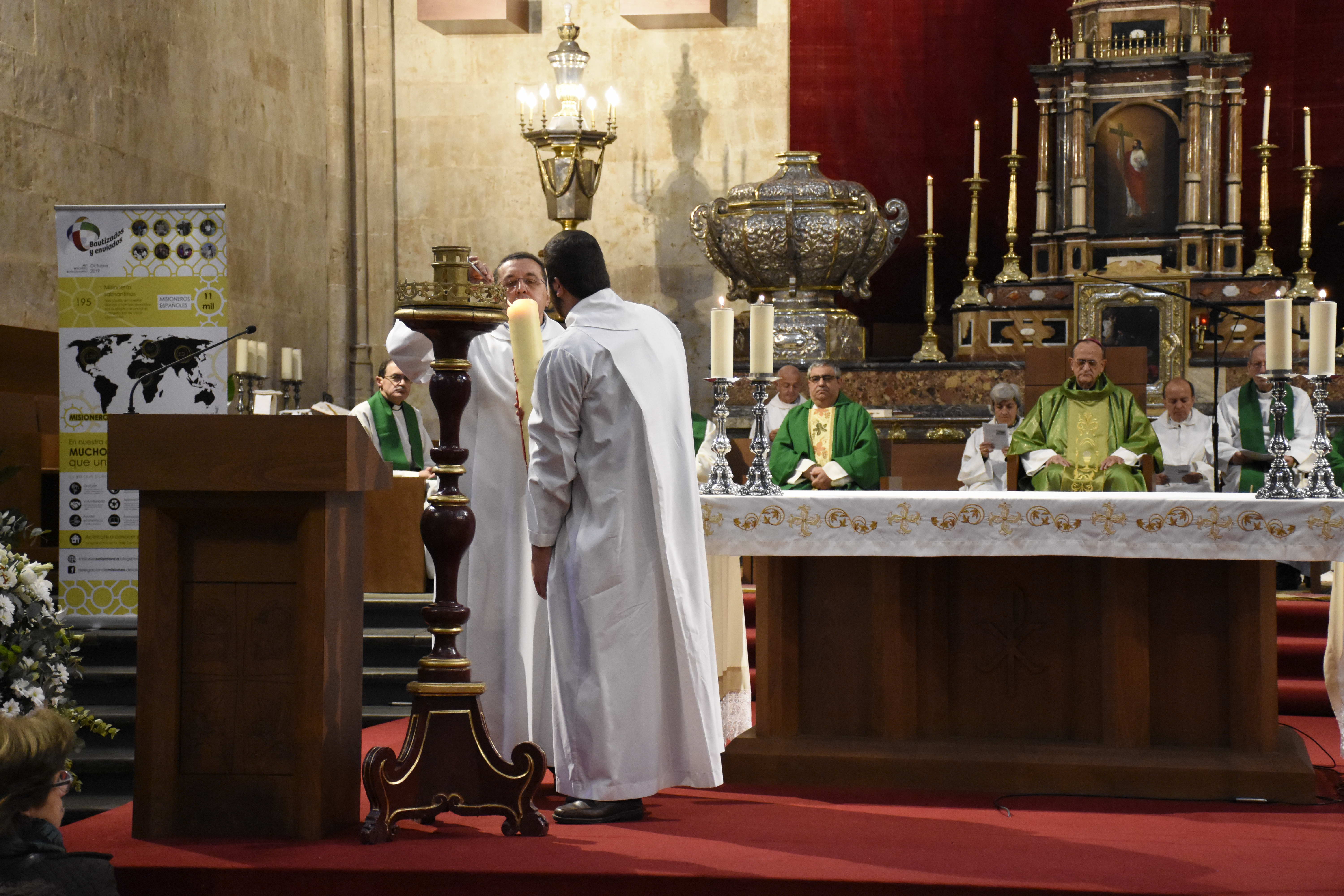La Catedral Nueva acogió este pasado domingo la eucaristía de clausura del Mes Misionero Extraordinario, presidida por el obispo de la Diócesis de Salamanca, Carlos López. Durante la celebración se recordaron varios gestos unidos al lema elegido por el Papa Francisco para esta iniciativa: “Bautizados y enviados”. Como por ejemplo, el agua del bautismo, el crisma y la luz.