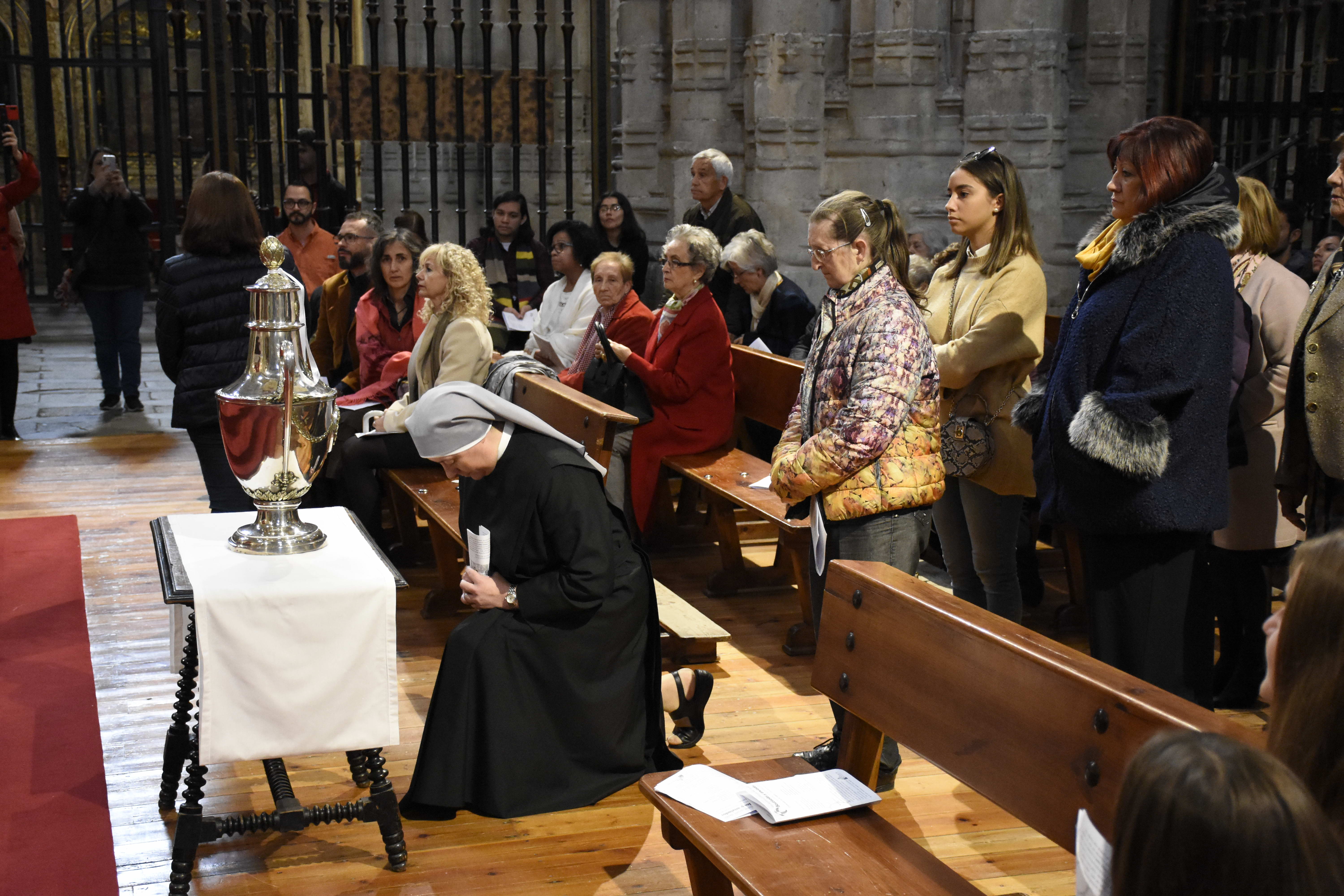 Después de la homilía y la comunión, se produjo el envío final, porque como se recordó, “el día de nuestro bautismo, fuimos constituidos sacerdotes, profetas y reyes”. El último gesto de acción de gracias fue ante el ánfora del Santo Crisma, que lo colocaron a los pies del altar para que todo aquel que quisiera hiciese algún gesto de veneración ante él, como santiguarse, inclinarse o dar un beso.