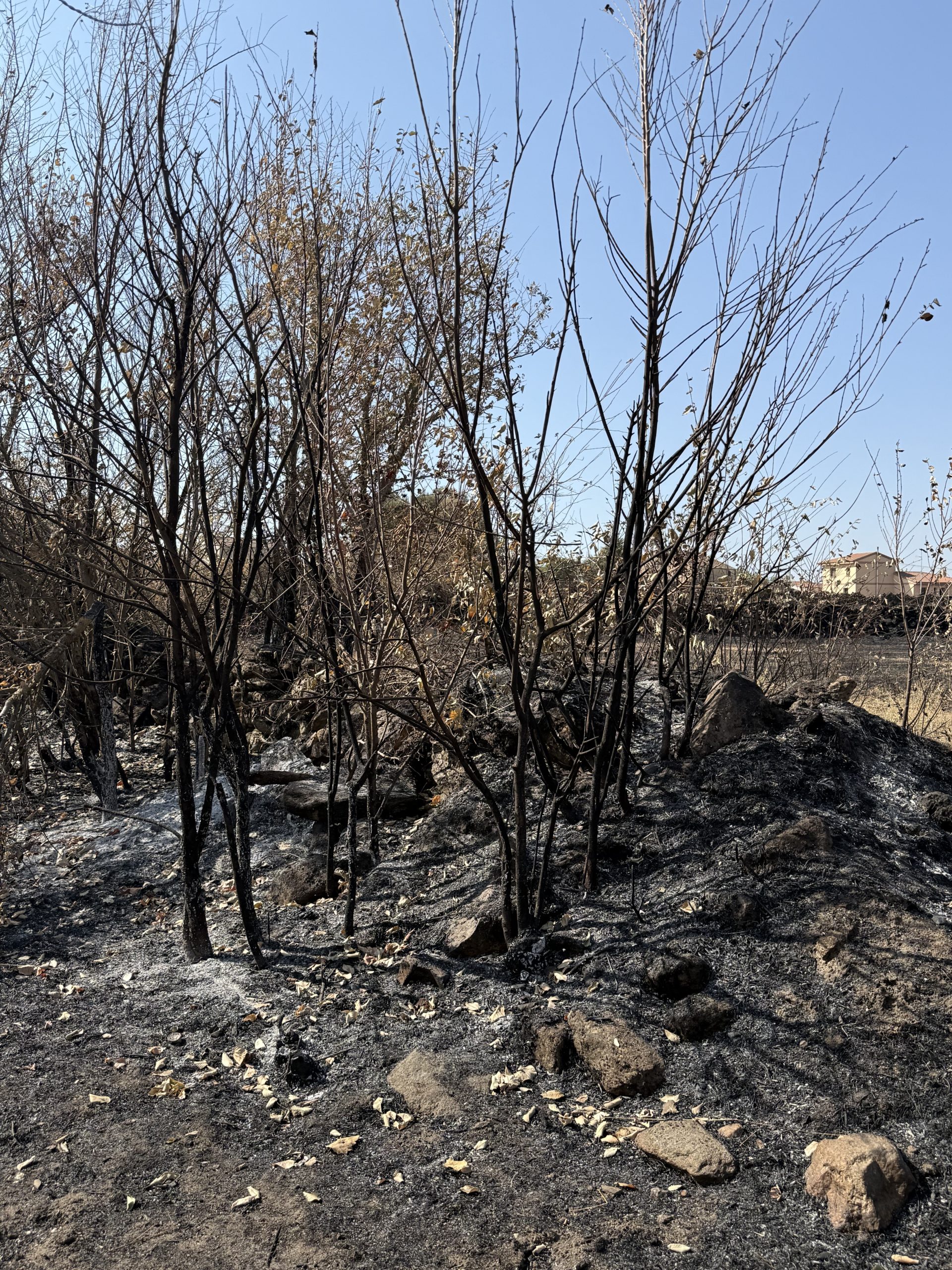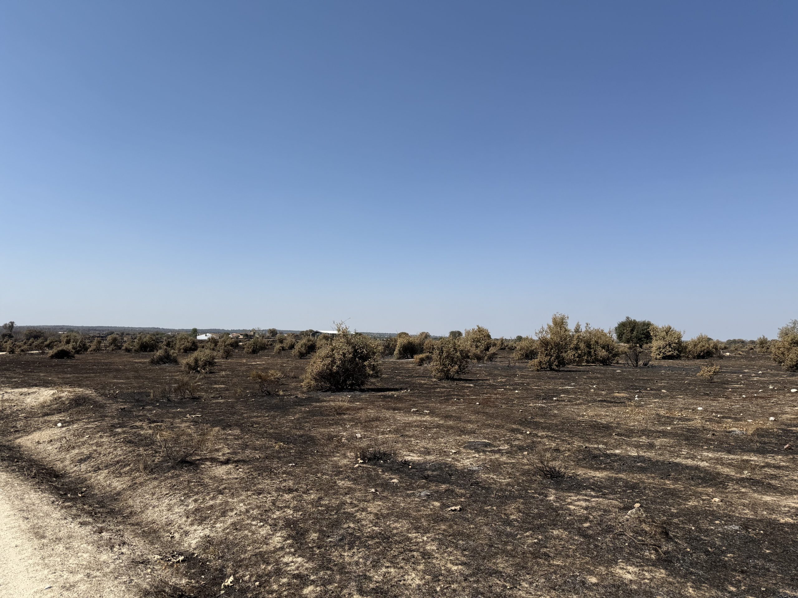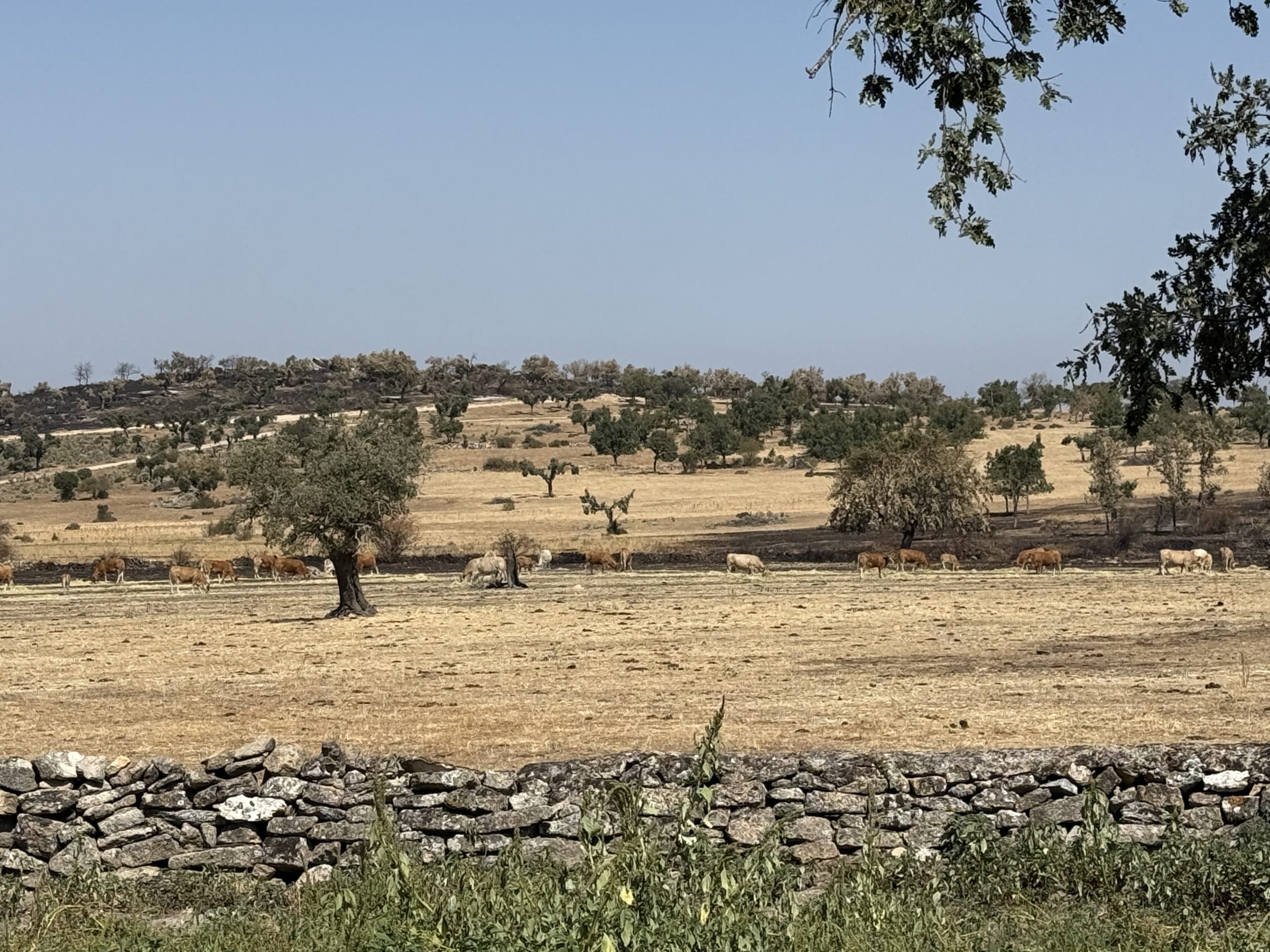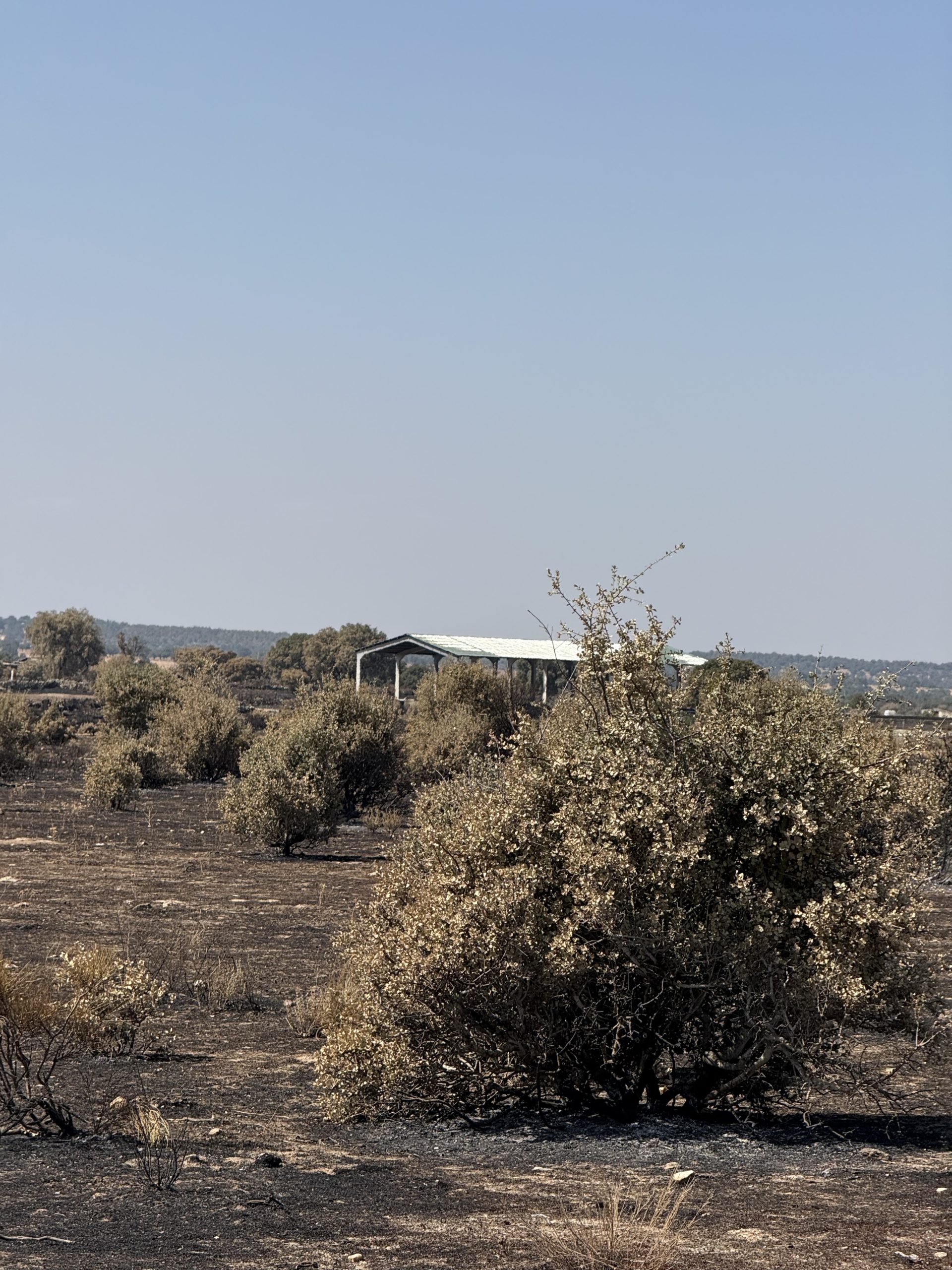 Las vacas de Herminio Mangas pastan en campos quemados gracias a las pacas de paja que se salvaron del incendio. “Fue un milagro”, y se emociona al señalar el lugar. Entre el paisaje quemado hasta donde se pierde la vista, se aprecia un montón de forraje almacenado amarillo, que libró de las llamas: “Nos ayudaron los bomberos y un sobrino con la manguera, porque teníamos un grifo, pero ha sido un milagro, y creo que en algo así, Dios algo habrá hecho”. Su pequeño huerto también se salvó del incendio por estar levantado sobre muros de piedra.