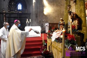 El obispo de la Diócesis de Salamanca, Carlos López Hernández, presidió el pasado 6 de enero la eucaristía solemne de la Epifanía del Señor celebrada en el altar mayor de la Catedral Nueva de Salamanca. En su homilía, el prelado recordó que el Niño nacido de la Virgen María en Belén, “vino no sólo para el pueblo de Israel, sino también para toda la humanidad”, y añadió que representada hoy por los Magos de Oriente y su camino en busca del Mesías.