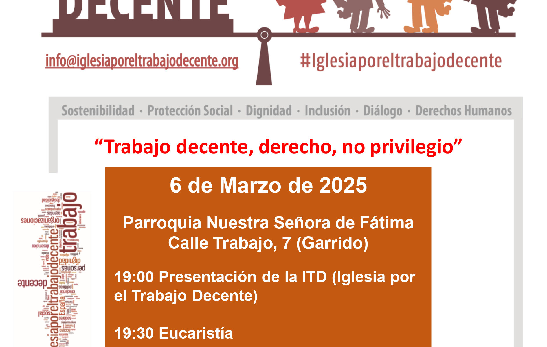 La jornada comenzará este jueves, 6 de marzo, con una presentación de esta entidad a las 19:00 horas, y una eucaristía a las 19:30 horas SERVICIO DIOCESANO DE COMUNICACIÓN … Sigue leyendo Iglesia por el Trabajo Decente celebra en Fátima el Día internacional de la Mujer