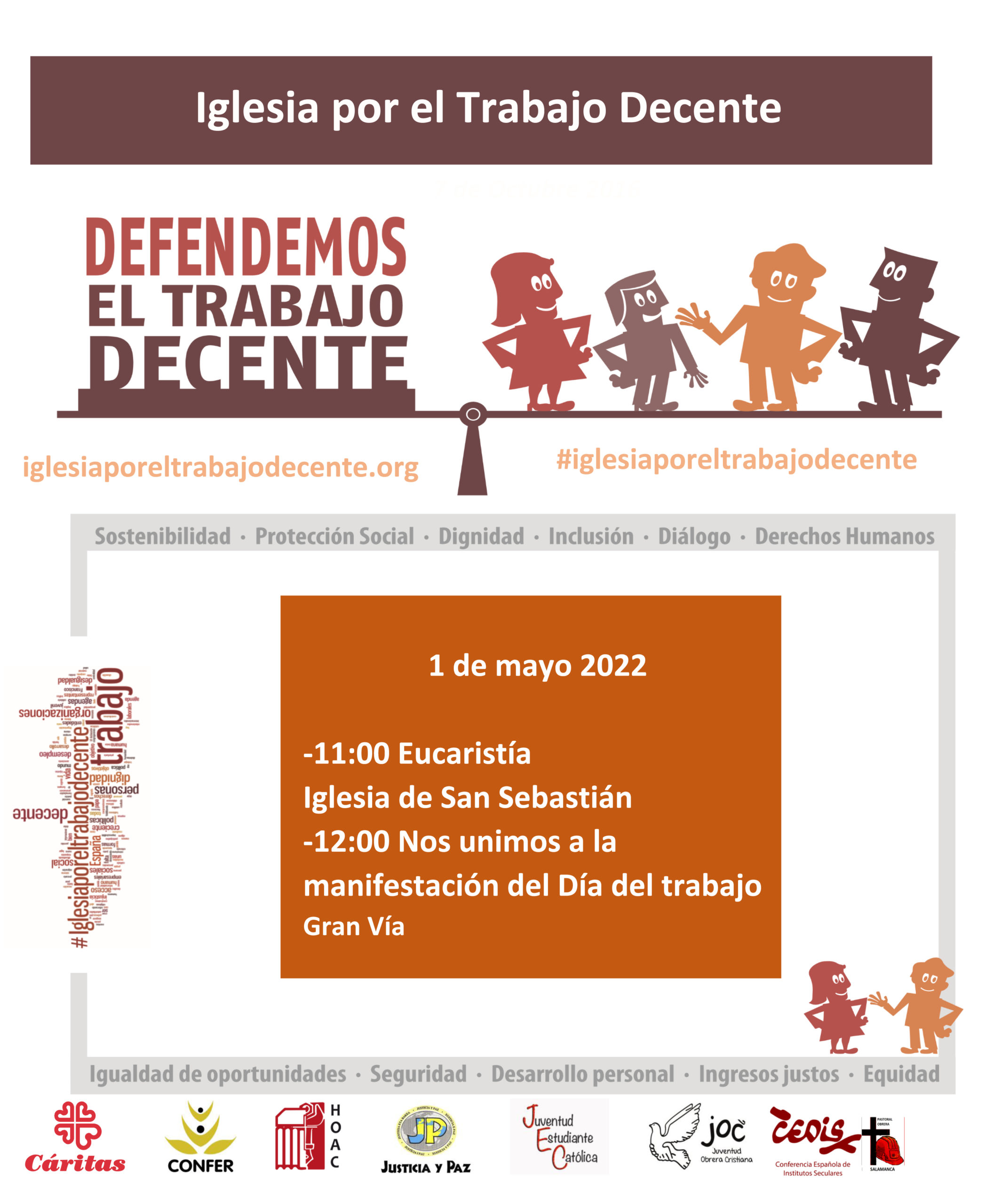 Como es habitual, Iglesia por el Trabajo Decente aporta a esta cita anual un manifiesto, este año bajo el lema. “Sin compromiso no haya trabajo decente”, que recoge la situación del trabajo decente en España y las principales reivindicaciones, en torno a situaciones como la calidad del empleo, los niveles de desempleo, la pobreza laboral existente, las redes de protección social, los salarios, la seguridad y la salud laboral, la participación de los trabajadores y las trabajadoras en la empresas, el descanso, etc. que configuran el concepto de trabajo decente, y son una preocupación y una prioridad de la Iglesia, en palabras del papa Francisco.