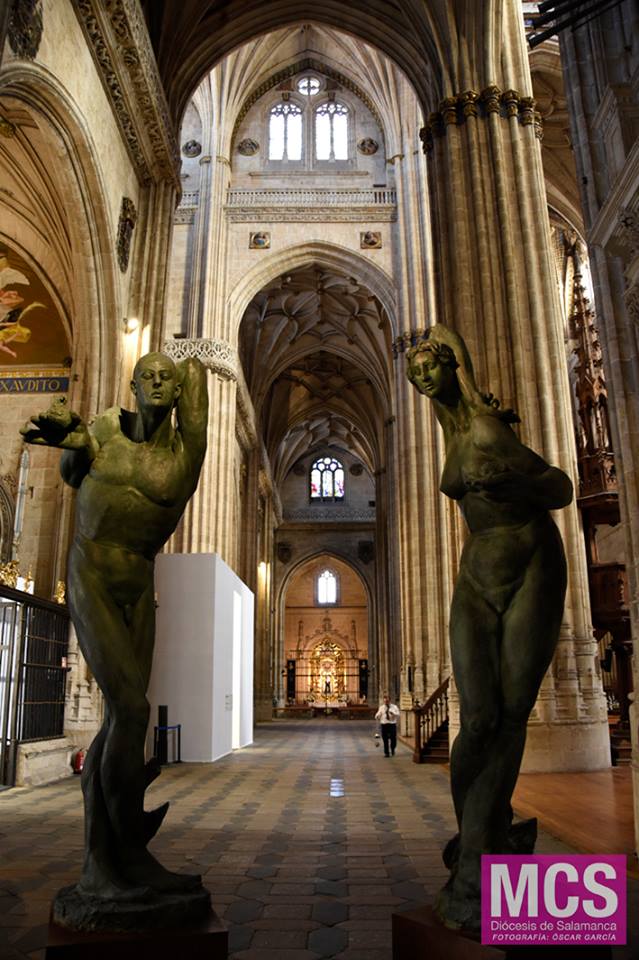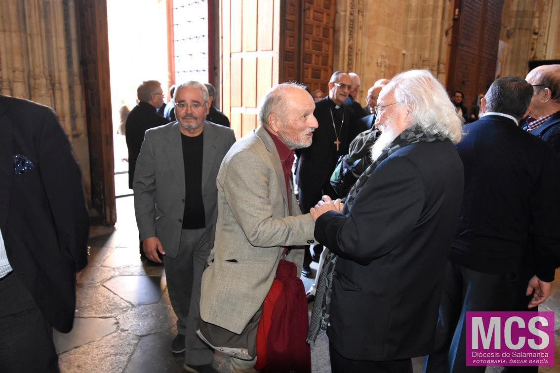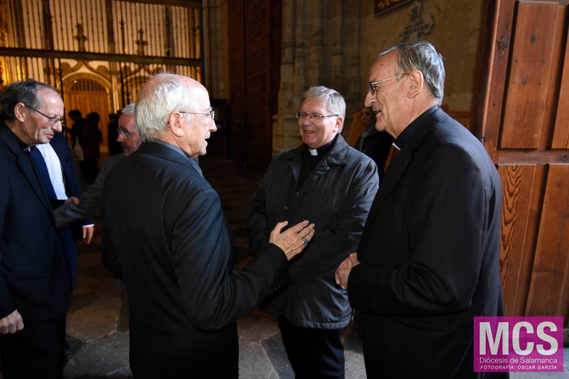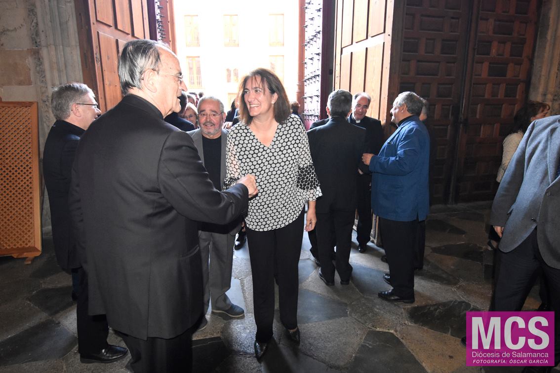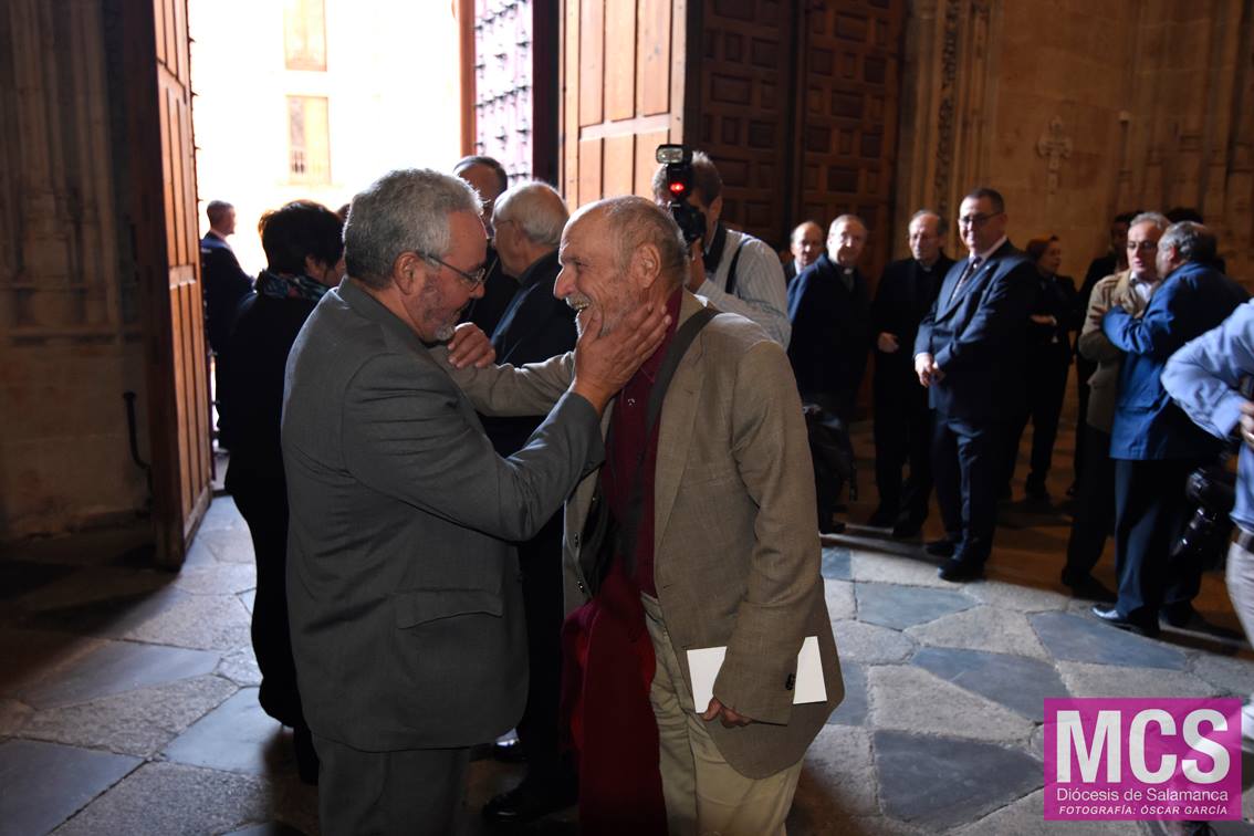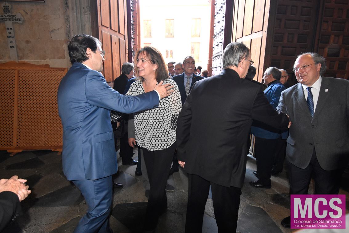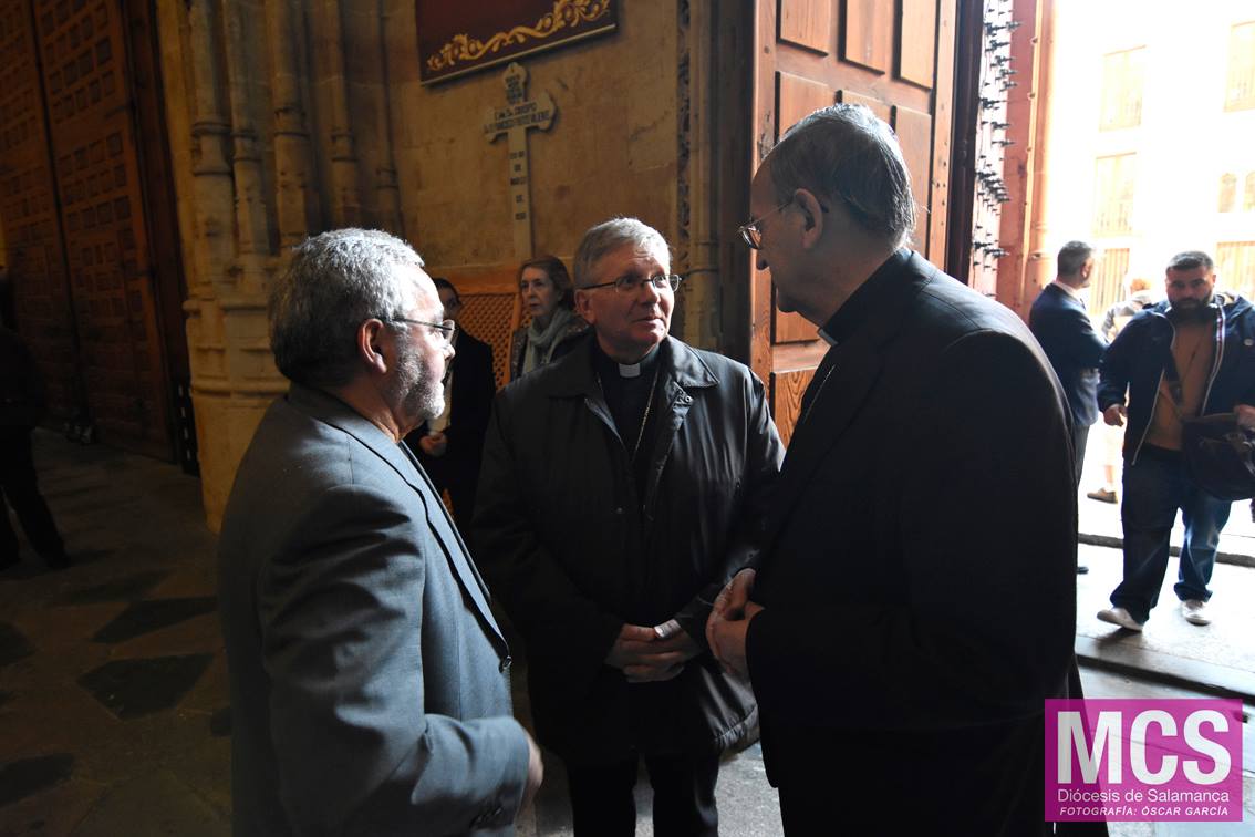 La Catedral Nueva de Salamanca ha acogido esta tarde el acto de inauguración de la exposición Contrapunto 2.0, una muestra conmemorativa de los 25 años de la mítica edición de Las Edades de 1993 en Salamanca ‘El contrapunto y su morada’. Además la Fundación Las Edades del Hombre celebra este año también el 30º aniversario del nacimiento de su proyecto (Valladolid, 1988), para revivir estas dos conmemoraciones y sumarse además al VIII Centenario de la Universidad de Salamanca ha presentado esta pequeña muestra ‘Contrapunto 2.0’ que vamos a poder disfrutar hasta el 24 de febrero de 2019. En el acto de inauguración se han dado cita numerosas autoridades eclesiásticas, del mundo de la cultura, la Universidad y la política, entre las que se encontraban nuestro Obispo Mons. Carlos López, el obispo de Ávila y presidente de la Fundación Las Edades Mons. Jesús G. Burillo, el obispo de Astorga Mons. Juan Antonio Menéndez, el de Zamora Mons. Gregorio Martínez y el obispo auxiliar de Valladolid Mons. Luis Argüello; los artistas Luciano Díaz-Castilla, Clara Gangutia y Antonio López; la consejera de Cultura y Turismo de la Junta de Castilla y León María Josefa García Cirac; el alcalde de Salamanca Alfonso Fernández Mañueco; el rector de la Universidad de Salamanca Ricardo Rivero; el delegado territorial de la Junta de Castilla y León en Salamanca Bienvenido Mena; Adolfo Domínguez, jefe del Servicio Territorial de Cultura de la Junta de Castilla y León en Salamanca y el excalde de Salamanca, Jesús Málaga, entre otros.