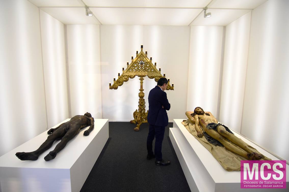En total se muestran un total de 36 piezas en las que están representadas todas las diócesis de Castilla y León y algunas piezas cedidas por artistas para la ocasión. Distribuidas en 12 cubículos de luz, 22 obras de arte sacro clásicas dialogan entre sí con otras 14 piezas de arte contemporáneo en un espacio predominado por la luz donde las obras artísticas se muestran al visitante sin intermediarios.