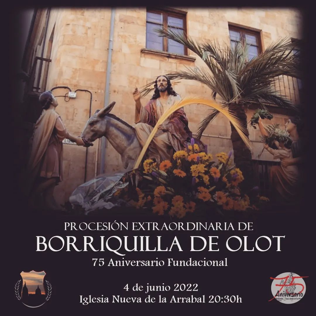 La salida está prevista a las 20:30 horas desde la antigua iglesia del Arrabal, como ya hiciera esta hermandad el Domingo de Ramos de 2002, por lo que será la segunda ocasión en la que cruce el Puente Romano y llegue a la ciudad desde la otra orilla del Tormes. Lo excepcional es que en sus 77 años de historia, será la primera vez que la hermandad salga en procesión por la tarde-noche.