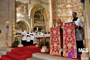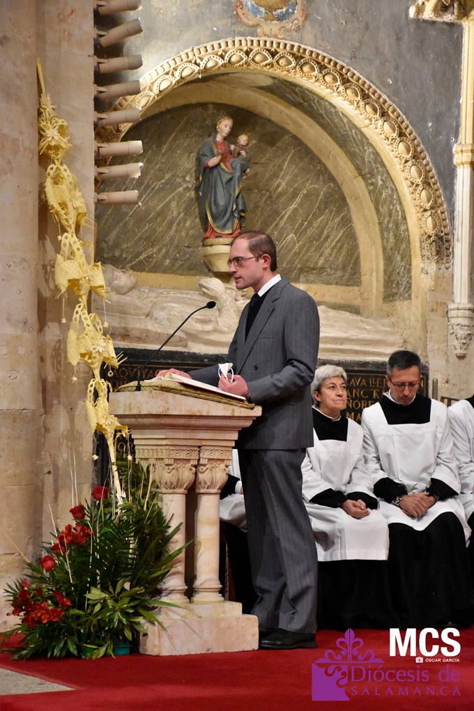 Cada Domingo de Ramos, en la liturgia de la Palabra se leen tres lecturas, donde destaca la del relato de la Pasión de Nuestro Señor Jesucristo a tres voces. En esta ocasión, se proclamó la Pasión según san Mateo (Mt 26,14-27,66), cuyo evangelio se lee en el ciclo litúrgico A, en el que estamos.