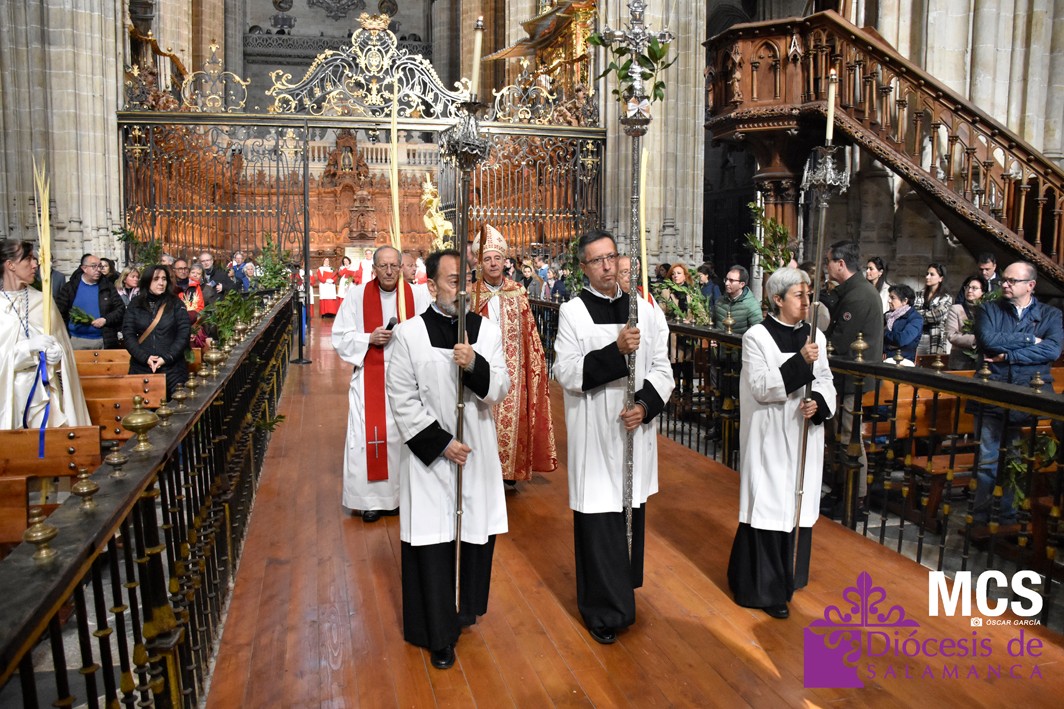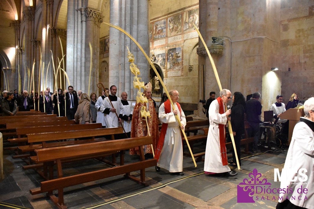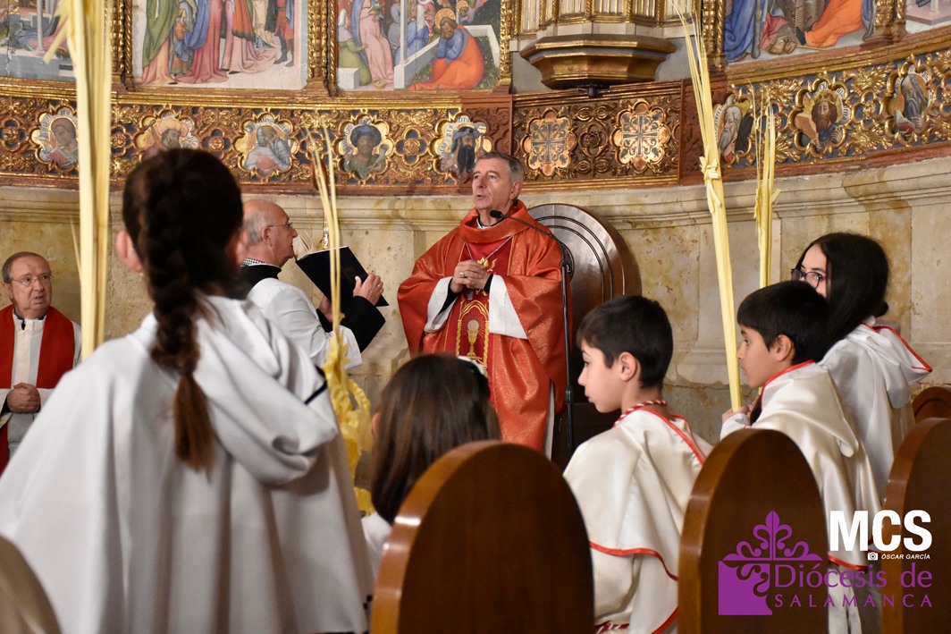 La Iglesia en Salamanca revivió la Entrada de Jesús en Jerusalén este Domingo de Ramos como inicio de la Semana Santa. En todas las parroquias se recordó la entrada victoriosa de Cristo en Jerusalén. Uno de los actos centrales en la ciudad tuvo lugar en la Catedral, presidido por el obispo, Mons. José Luis Retana.
