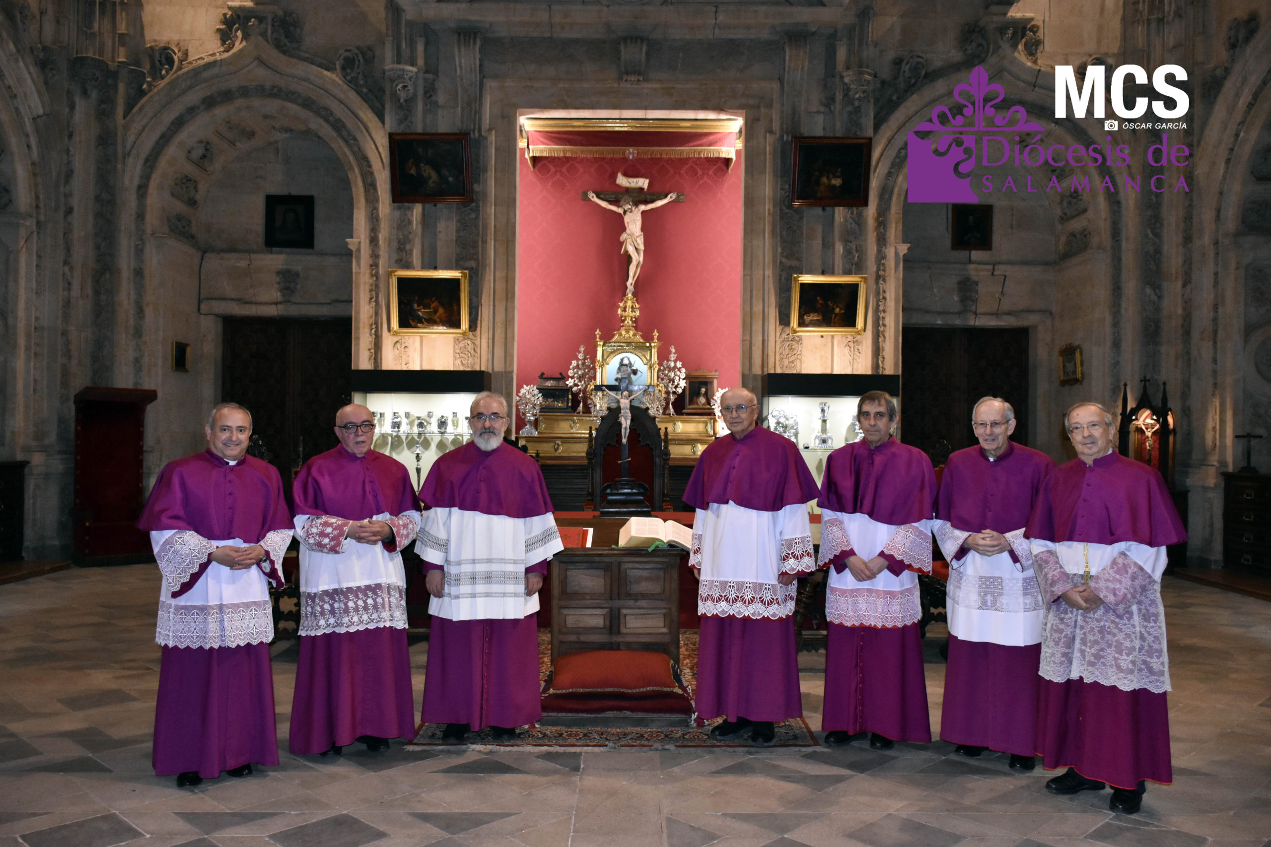 El Cabildo de la Catedral de Salamanca queda conformado de la siguiente manera: cuatro canónigos en activo: Jorge García García (deán), Casimiro Muñoz Martín (secretario y archivero Capitular), José Luis Sánchez Moyano (superintendente y prefecto de liturgia) y Juan José Calles Garzón; y cinco eméritos: José Calvo Fernández, Marciano Sánchez Rodríguez, Jesús Terradillos García, Florentino Gutiérrez Sánchez y Antonio Matilla Matilla.