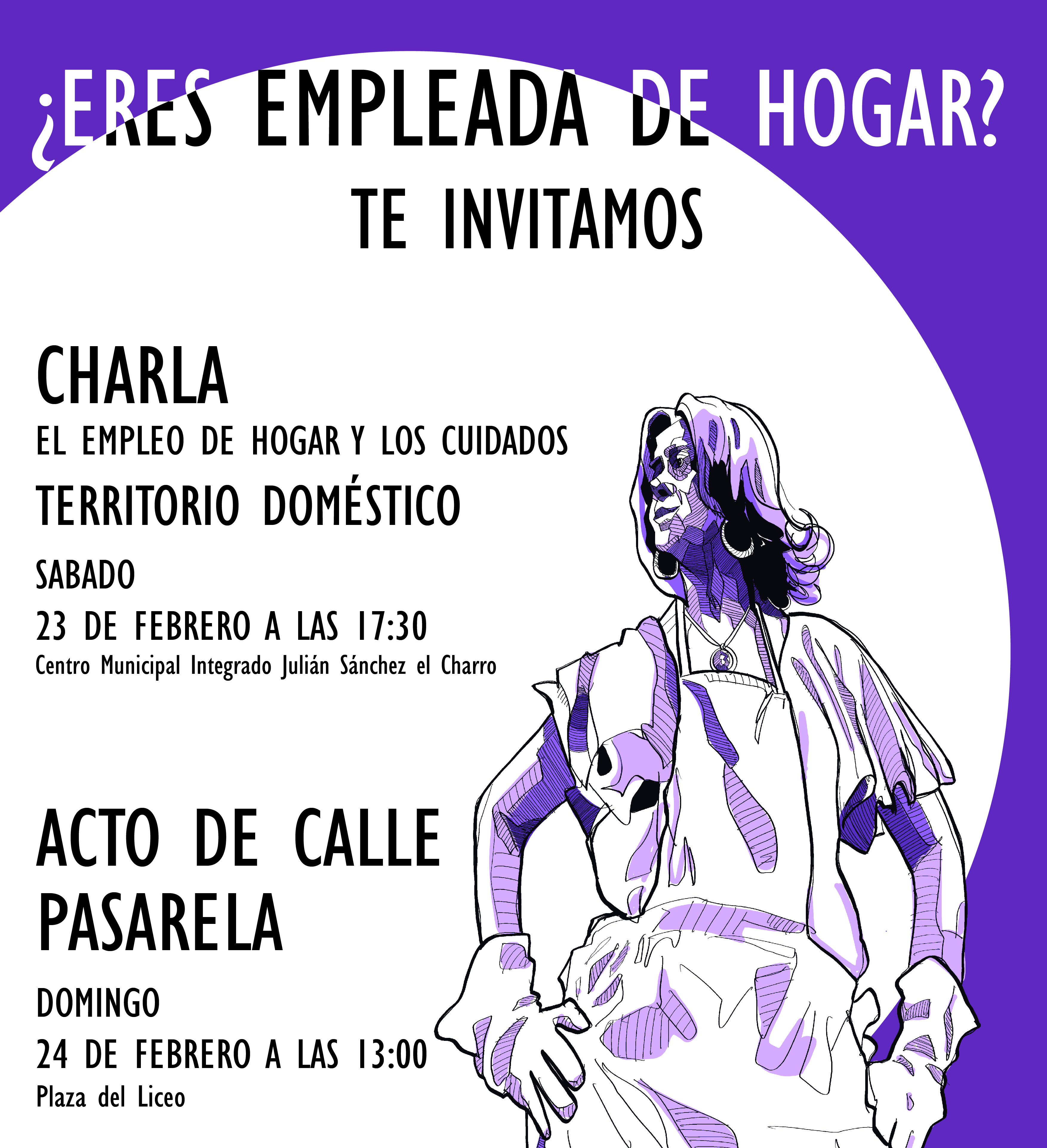 Una charla con título: “Empleo de hogar y los cuidados”, abrirá las jornadas el sábado 23 de febrero, a las 17.30 horas, en el Centro Municipal Integrado ‘Julián Sánchez El Charro”.