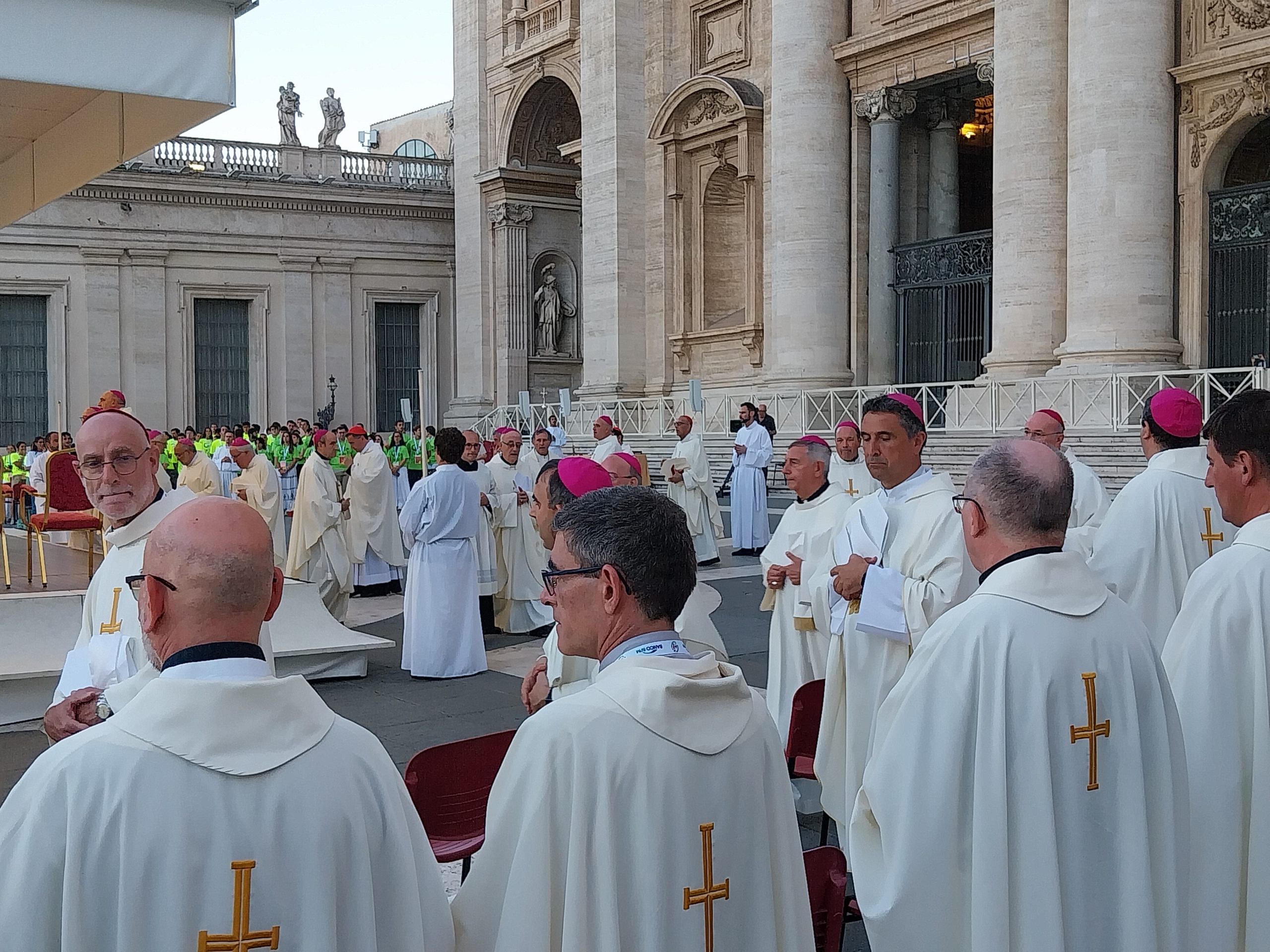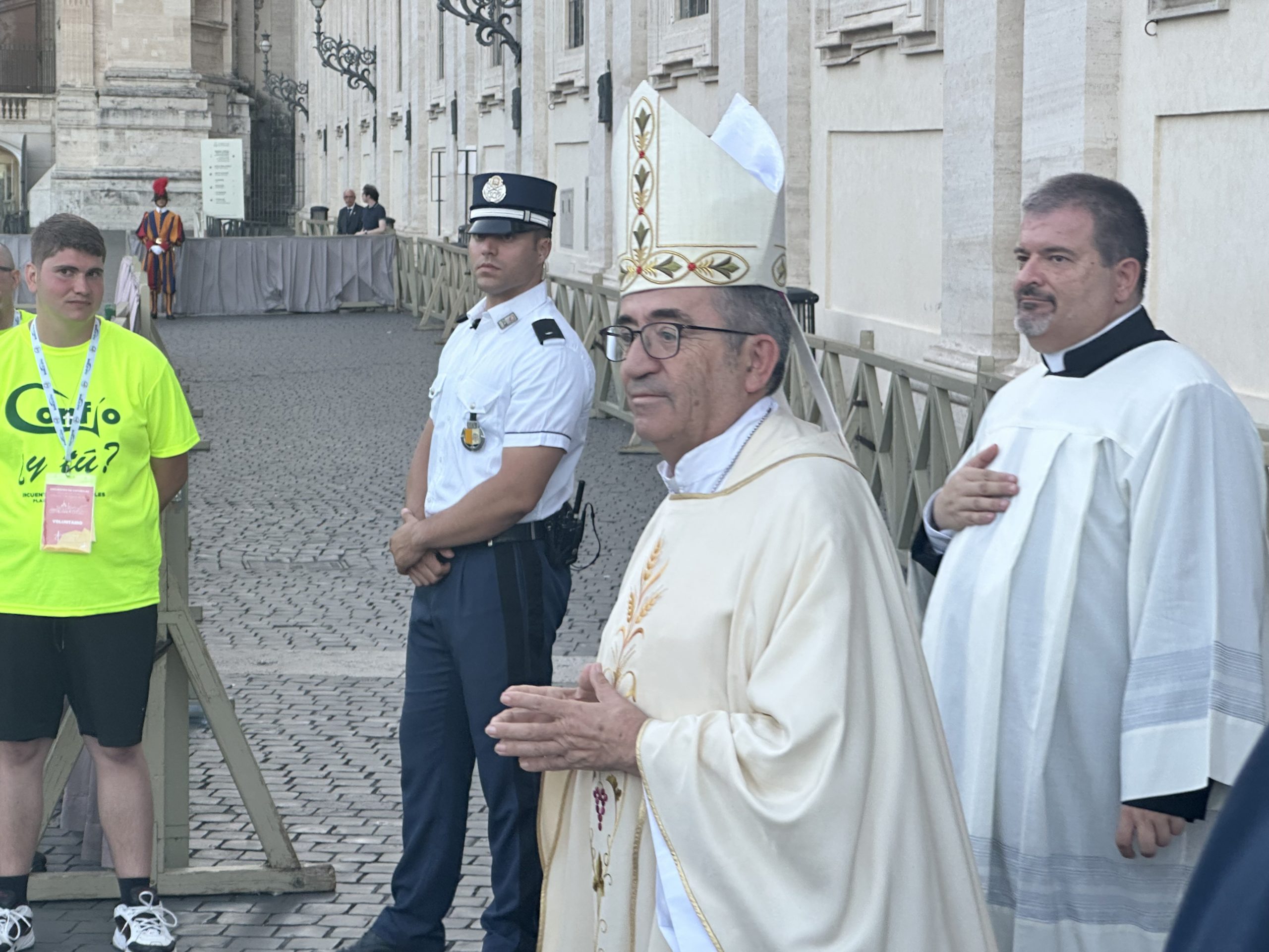 A continuación, tuvo lugar la eucaristía del Encuentro de Españoles, la primera vez que se celebraba una misa nacional en la misma plaza de San Pedro, presidida por el arzobispo de Valladolid y presidente de la Conferencia Episcopal Española, Mons. Luis Argüello, con una celebración cargada de simbolismo, comunión y envío.