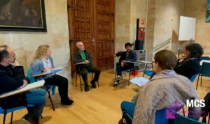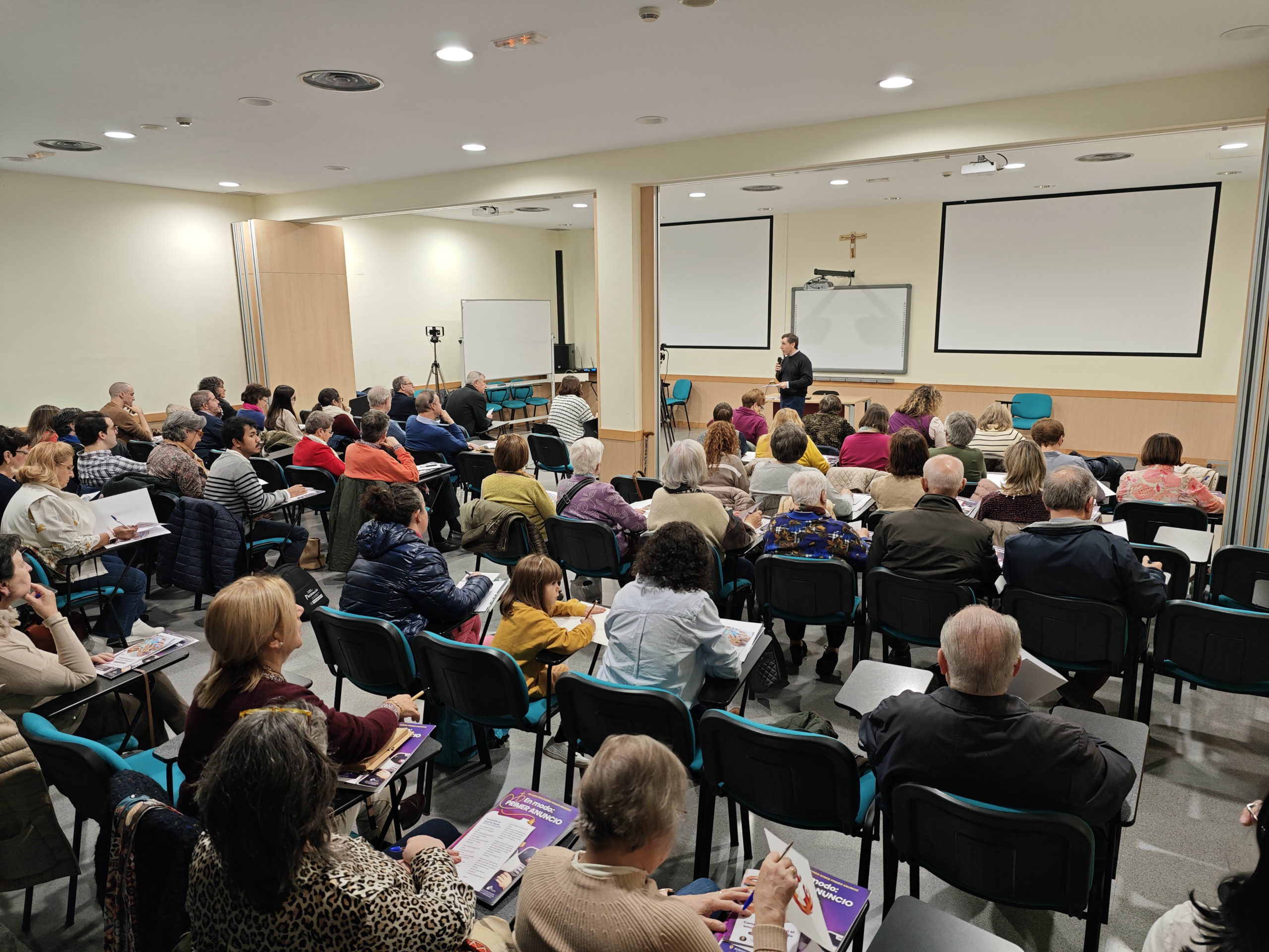 Tras su intervención comenzó el trabajo por pequeños grupos en diferentes aulas y salas de la Casa de la Iglesia, donde reflexionaban sobre los aspectos tratados por Carvajal en su ponencia, y sobre un cuestionario que compartió para ellos. Y tras una breve pausa para un café, se inició un tiempo de diálogo donde interpelaban sus inquietudes a Juan Carlos Carvajal. La jornada concluyó con una oración que se celebró en la capilla mayor de la Casa de la Iglesia.