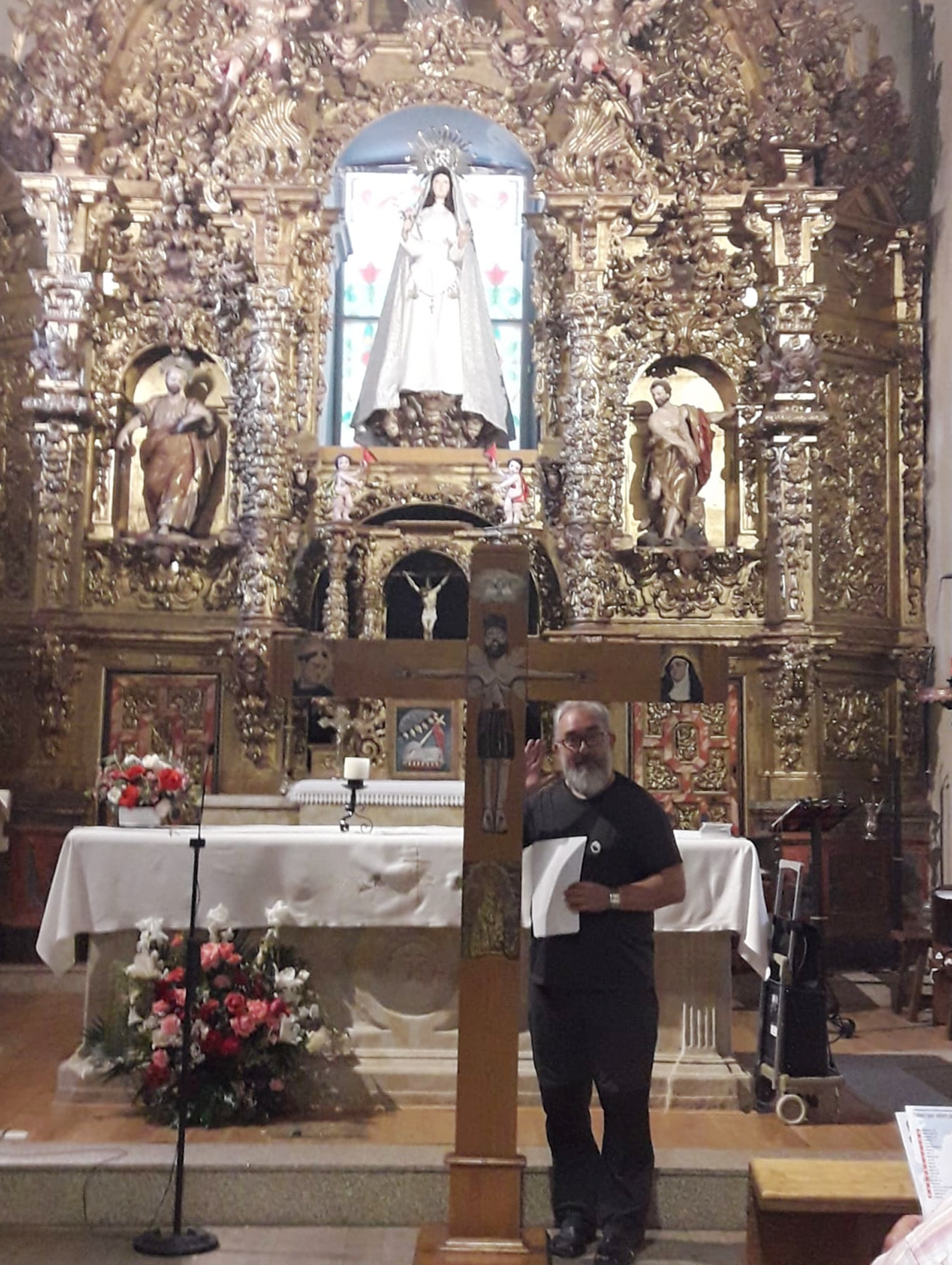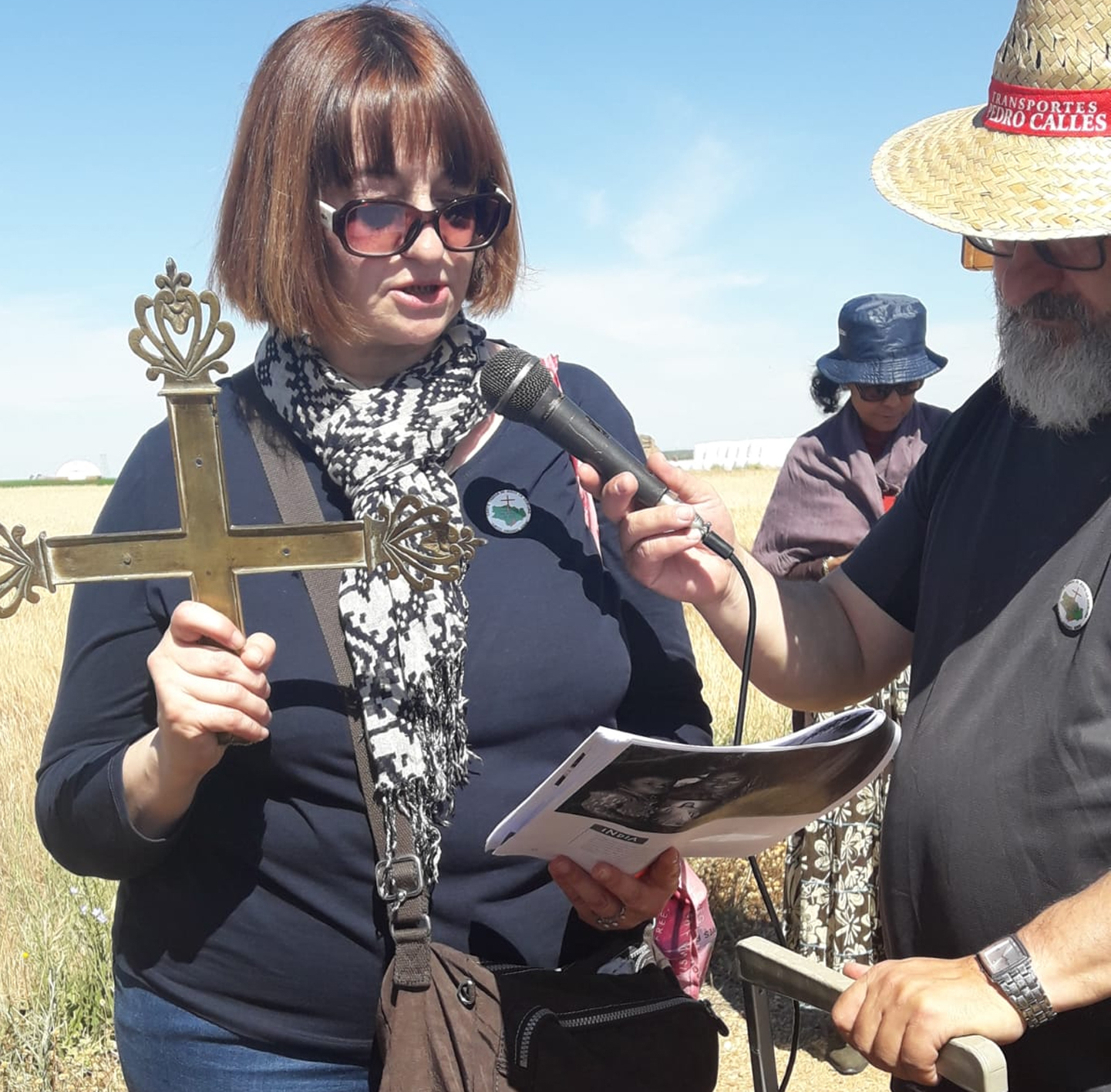 Hemos iniciado la asamblea en la iglesia de Castellanos de Villiquera invocando la presencia del Espíritu Santo para que Él nos guiara y acompañara durante toda la jornada que hemos querido iniciarla con un Via Lucis. A través del Camino de Santiago hemos ido jalonando las 14 estaciones portando la Cruz de la Asamblea diocesana y una pequeña “cruz profanada en Siria” y orando por todos los cristianos perseguidos en tantos lugares de la tierra (India, Irak, Nigeria, Venezuela, Cuba, China, Egipto…). ¡Hemos hecho un camino orante en comunión con todos nuestros hermanos perseguidos por causa de la fe y por su condición de cristianos! ¡Hemos llevado la Cruz de la Asamblea a hombros rogándole al Señor que nos ayude a caminar tras sus mismas huellas!