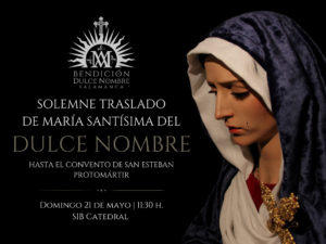 En la eucaristía participará en los cantos el coro Tomás Luis de Victoria, y la Archicofradía del Rosario ha repartido más de 500 invitaciones. Los padrinos de las imágenes serán las Madres Dominicas del Convento de las Dueñas; el Ayuntamiento de Salamanca; la Junta de Semana Santa de Salamanca y la Hermandad de la Sagrada Cena de Sevilla. María Santísima del Dulce Nombre quedará expuesta en devoto besamanos tras la ceremonia de bendición.