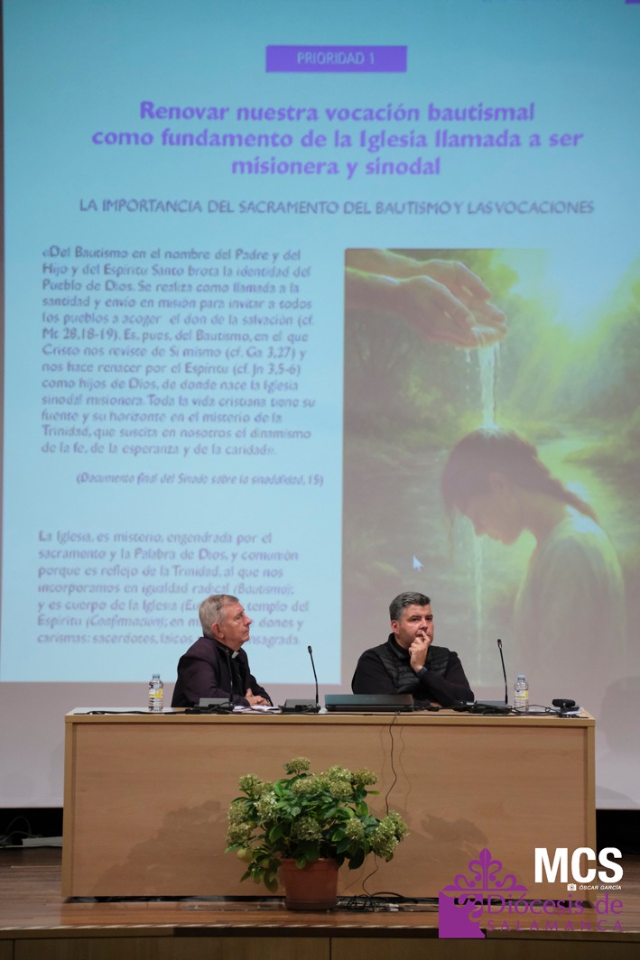 El delegado episcopal para vivir el Misterio y la Comunión, José Ángel Ávila, presentó la primera prioridad: “Renovar la vocación bautismal como fundamento de una Iglesia sinodal y misionera”. Para ello, las delegaciones implicadas (Liturgia; Familia y Vida; Vida Consagrada; Clero y Vocaciones; Apostolado Laical; Vida Contemplativa; Ecumenismo) unificarán calendario y potenciarán sus jornadas propias para dar visibilidad a la vocación común y a las vocaciones específicas. Como hito común, se anunció un Congreso diocesano de pastoral vocacional el fin de semana del 14 y 15 de marzo de 2026, coordinado por la Mesa de Pastoral Vocacional.